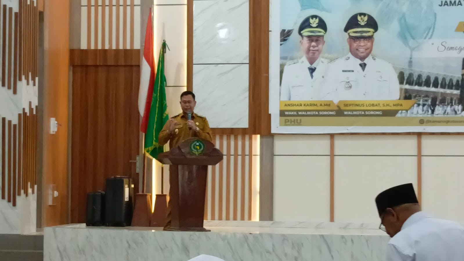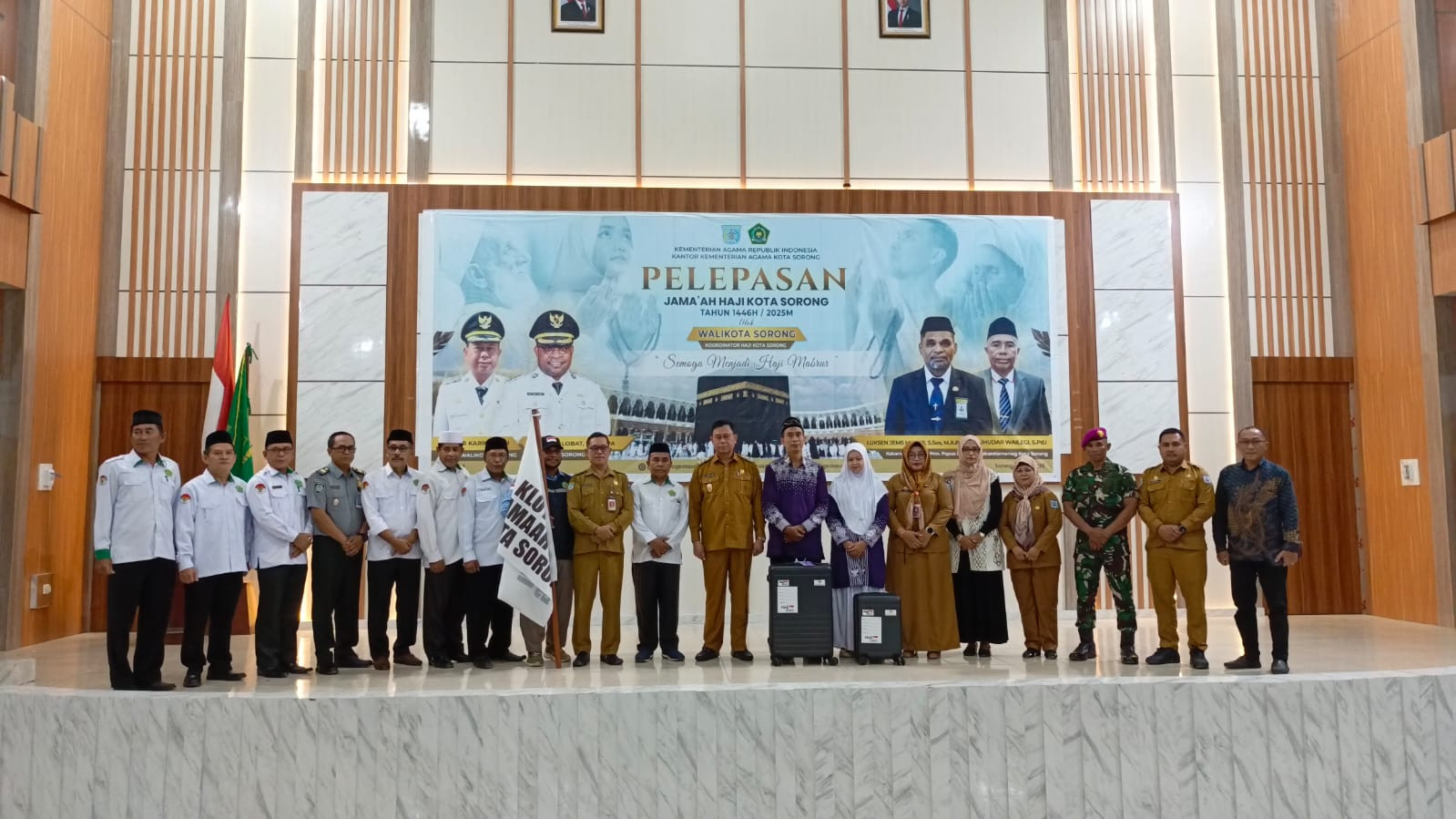 237 Calon Jemaah Haji Kota Sorong Siap Berangkat ke Tanah Suciebanyak 237 calon jemaah haji asal Kota Sorong yang tergabung dalam Kloter 23 Makassar resmi dilepas keberangkatannya ke Tanah Suci. Prosesi pelepasan berlangsung khidmat di Aula IAIN Sorong pada Senin (5/5), yang turut dihadiri oleh Wakil Wali Kota Sorong, H. Anshar Karim, A.Md, di dampingi Asisten II Setda Kota Sorong, Tamrin Tajuddin, ST, MM serta beberapa Forkopimda lainnya.