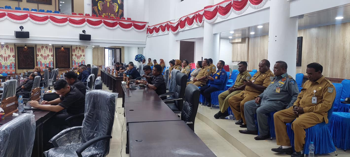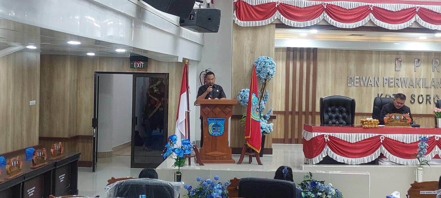 Penjabat Wali Kota Sorong, Dr. Bernhard Eduard Rondonuwu, S.Sos., M.Si. hadir pada Menghadiri Rapat Pleno XXIV Paripurna XVIII DPRK Masa Sidang Tahun 2024 Sorong, Dengan Agenda Pemandangan Umum Fraksi-fraksi Terhadap Materi RAPERDA APBD Pemerintah Kota Sorong 2024. Gedung DPRK Sorong. Selasa, (26/11/224).Sebagaimana disampaikan oleh Empat Fraksi, yakni :