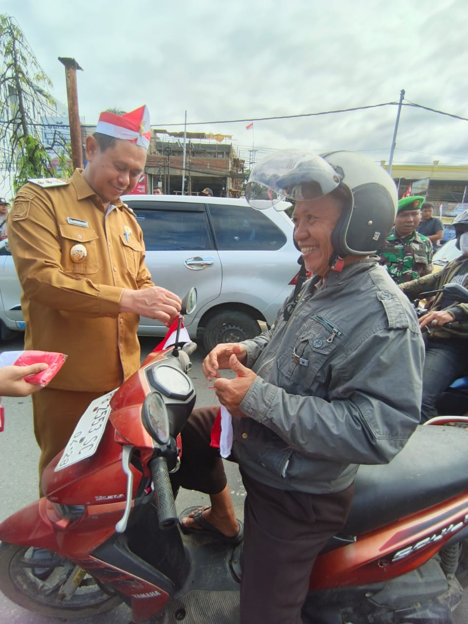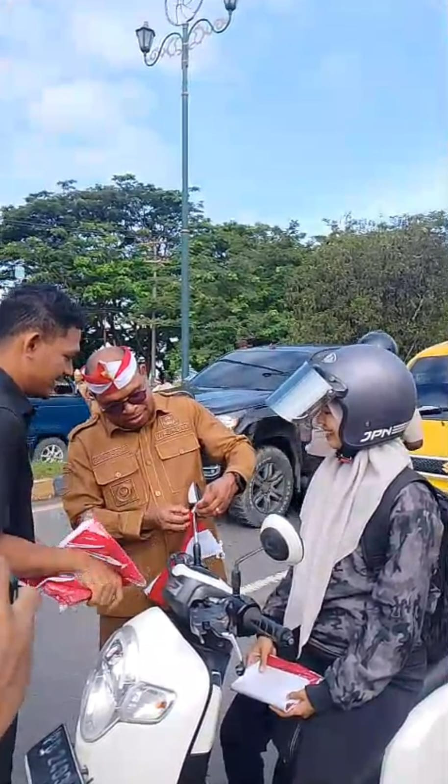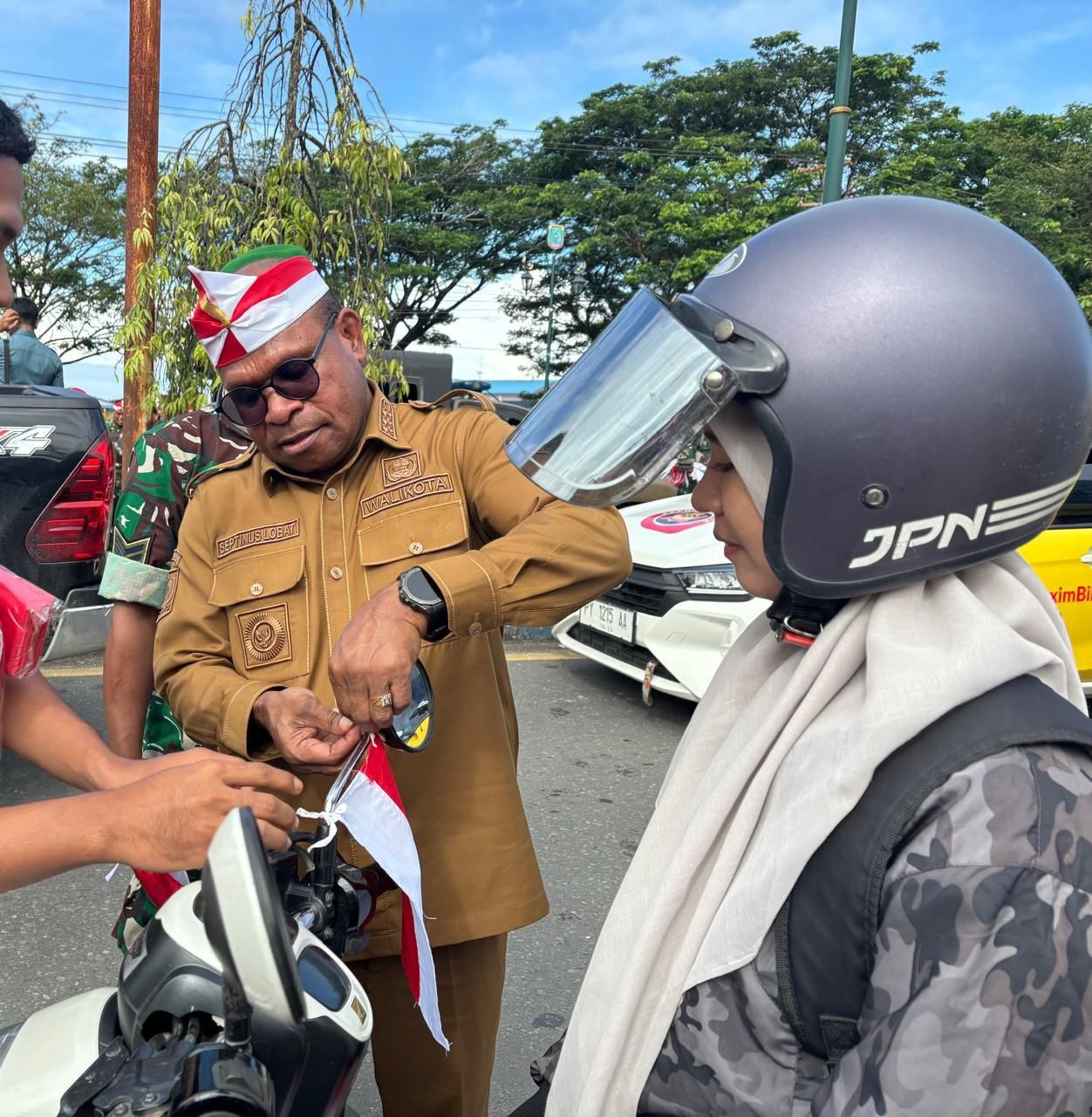 Kegiatan kemudian dilanjutkan dengan pembagian bendera secara langsung kepada masyarakat Kota Sorong, yang dilaksanakan di depan Bandara DEO Kota Sorong. (Dinas Kominfo Kota Sorong).