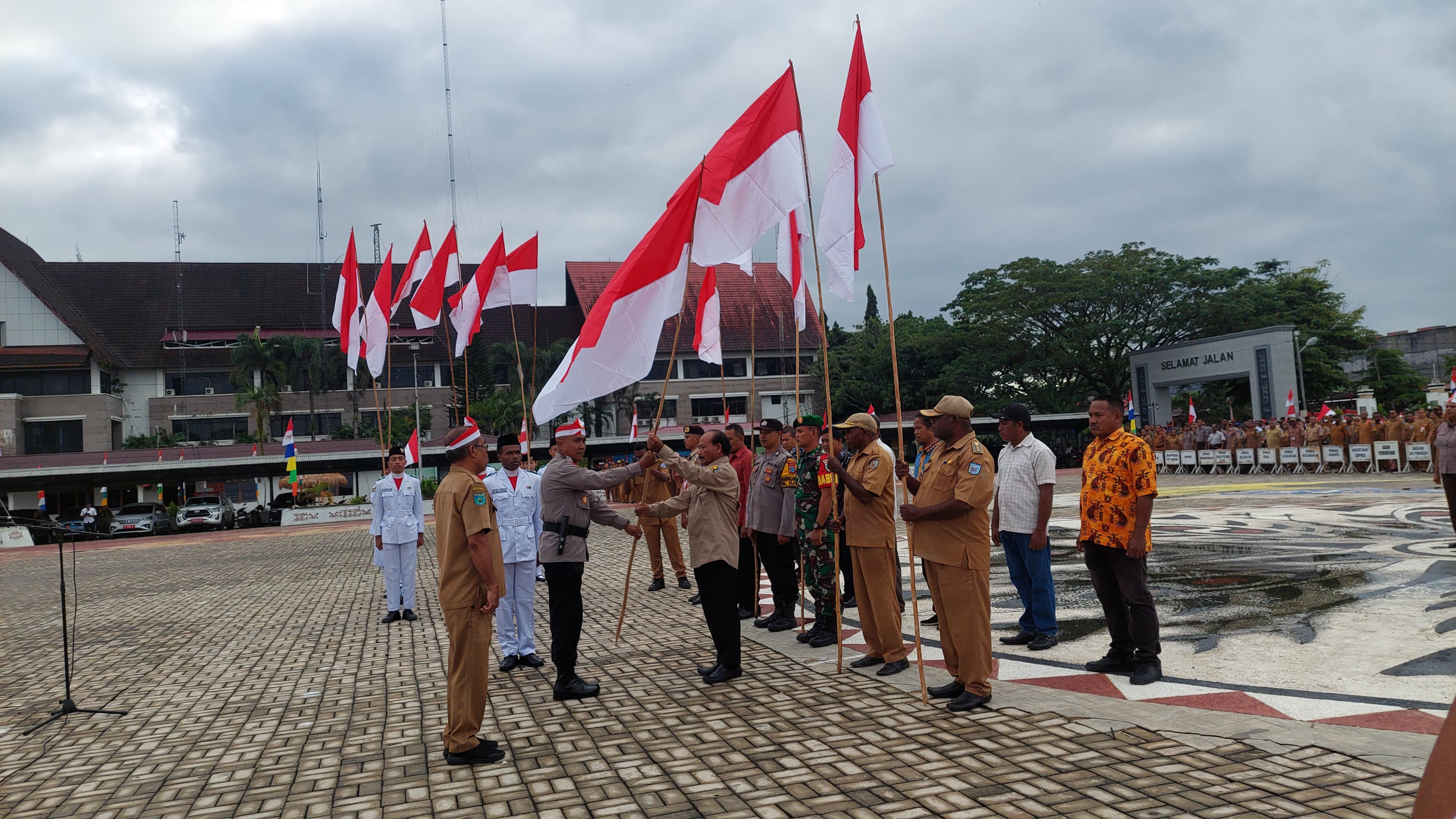 Apel Pagi Di Lingkungan Pemerintah Kota Sorong Sekaligus Pencanangan Pembagian Bendera Merah Putih