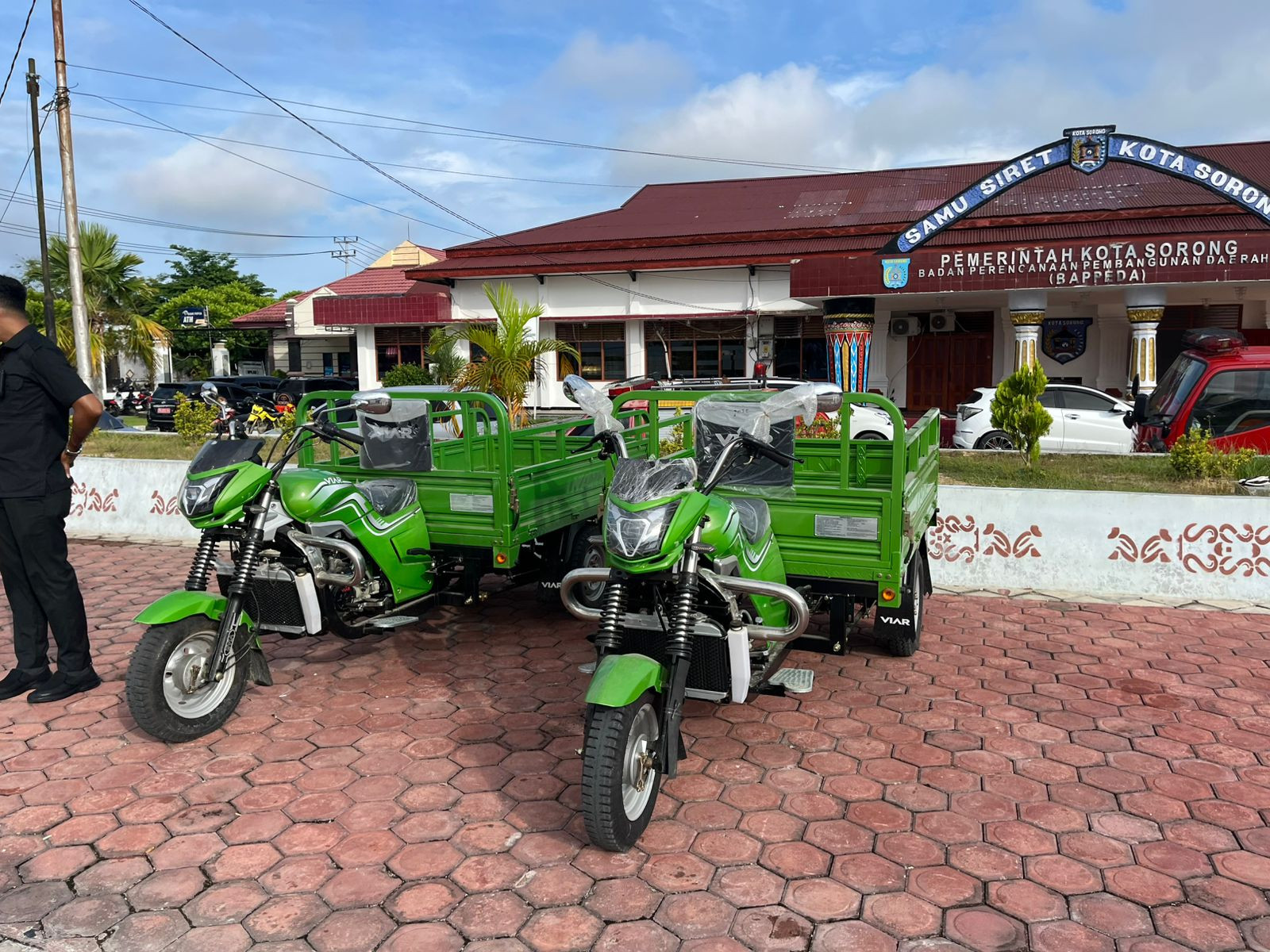 Sebelumnya juga diserahkan kunci motor pengangkut sampah dan penampungan sampah bagi perwakilan Kepala Distrik dan Lurah. (Diskominfo Kota Sorong)