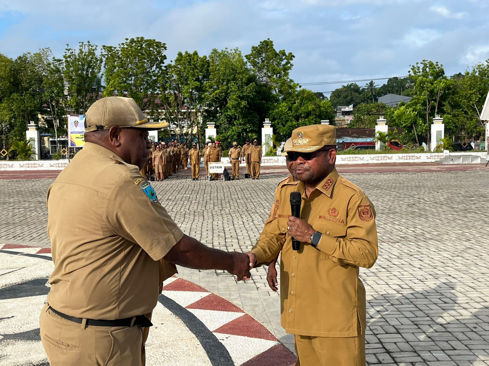 Wali Kota Sorong Septinus Lobat, S.H., MPA, menjadi pembina dalam apel Pagi Pemerintah Kota Sorong yang dilaksanakan di gedung lapangan landscape kompleks kantor Walikota Sorong dan juga penyerahan penampung sampah dan motor pengangkut sampah bagi distrik dan kelurahan. Apel ini diikuti oleh para Pimpinan OPD dan para ASN serta tenaga Honorer Kota Sorong. Senin, (19/05/2025).