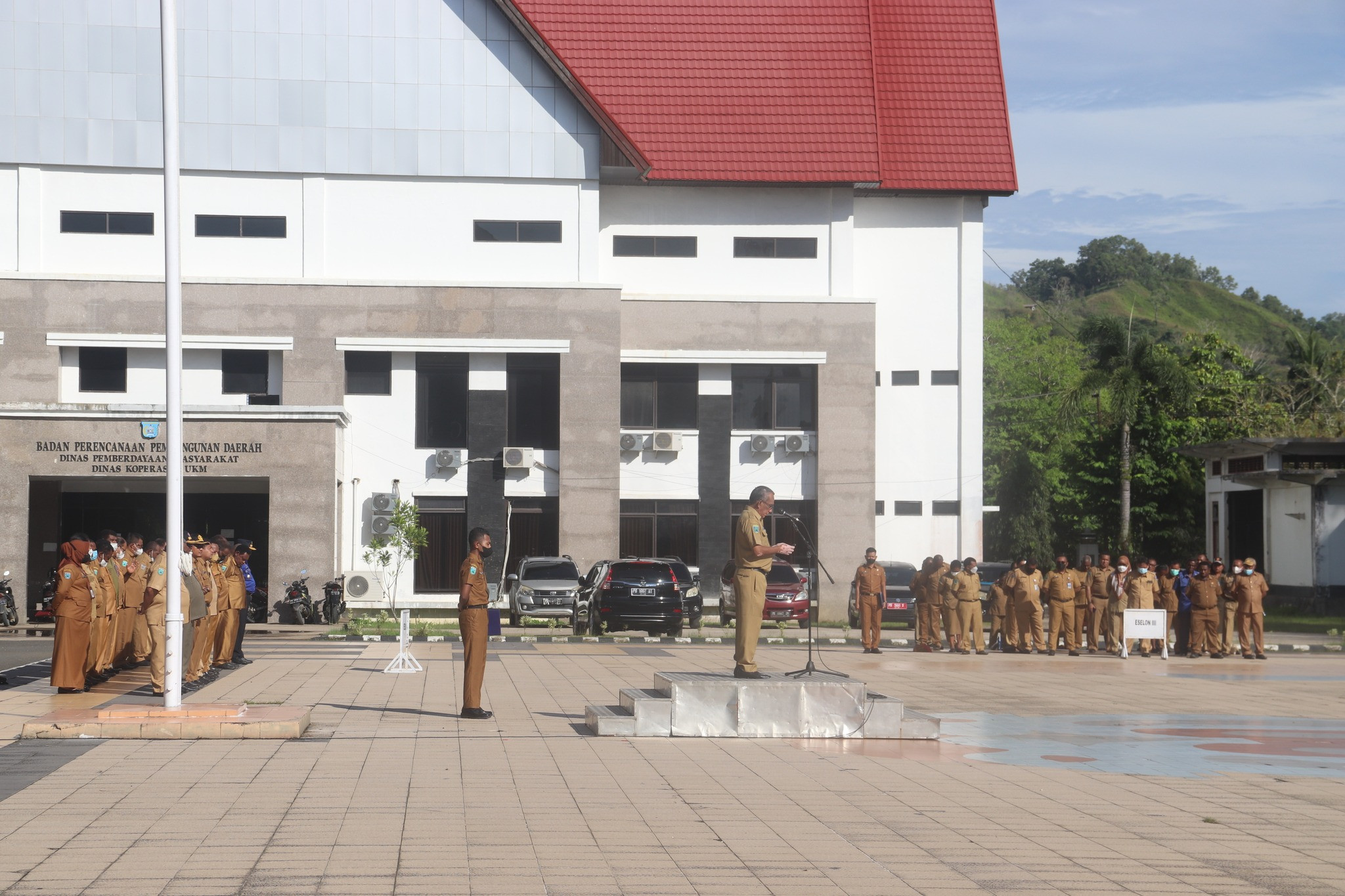 Seluruh ASN dan Tenaga Honorer di Kantor Walikota Sorong melaksanakan Apel Pagi, Senin, (12/9/2022), Hanok Talla, S.Sos selaku Asisten II Administrasi Umum Sekretariat Daerah Kota Sorong yang menjadi Pembina Apel Pagi.