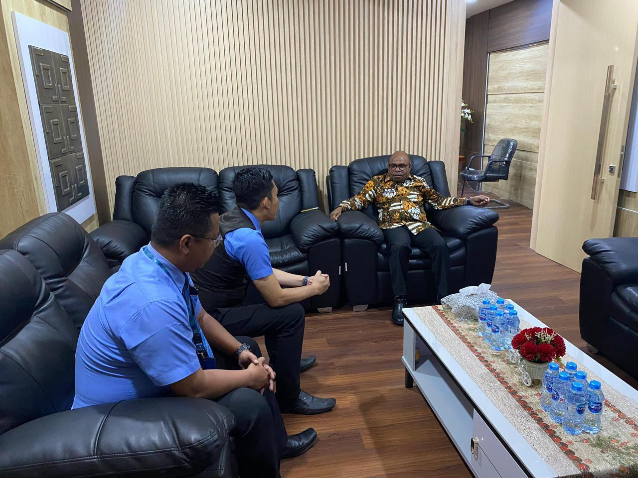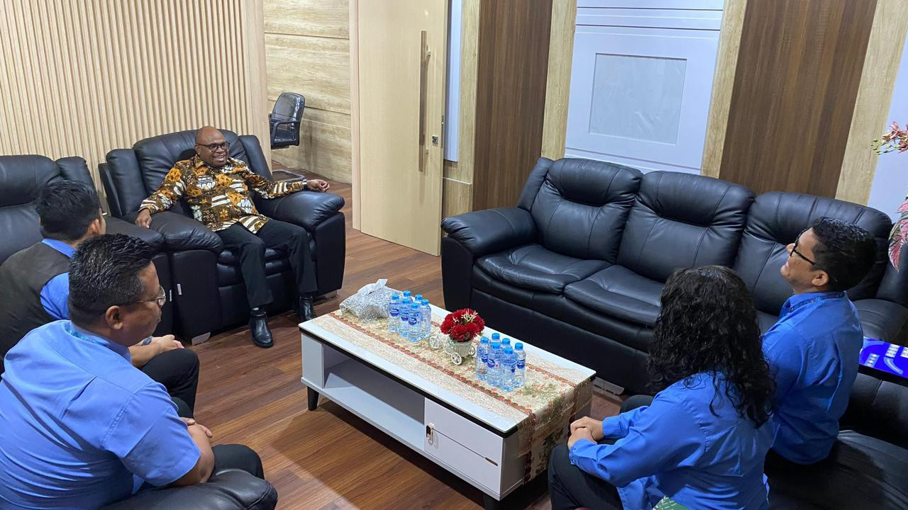 BERITA FOTO :Wali Kota Sorong, Septinus Lobat, S.H., MPA., terima audiens dari Penerbit Erlangga Papua, di ruang kerja Wali Kota Sorong. Kamis, (8/1/2026)