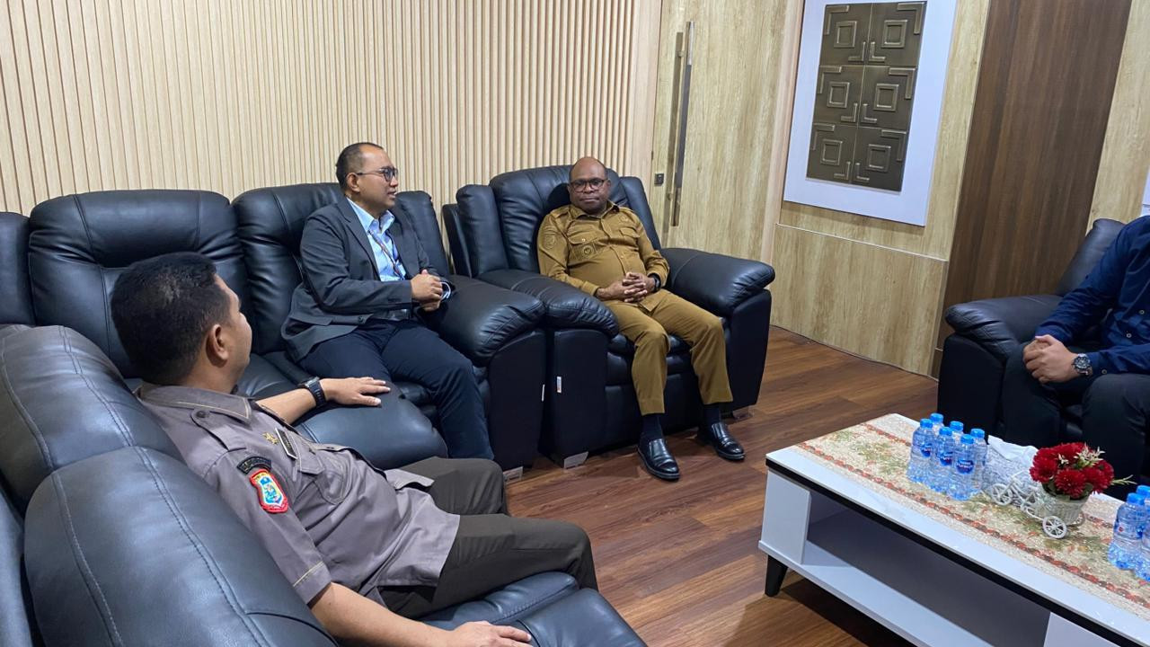 Berita Foto : Wali Kota Sorong, Septinus Lobat, S.H., MPA., terima audiens Pimpinan Bank BNI Cabang Sorong di ruang kerja Wali Kota Sorong. Kota Sorong, (14/4/2026).