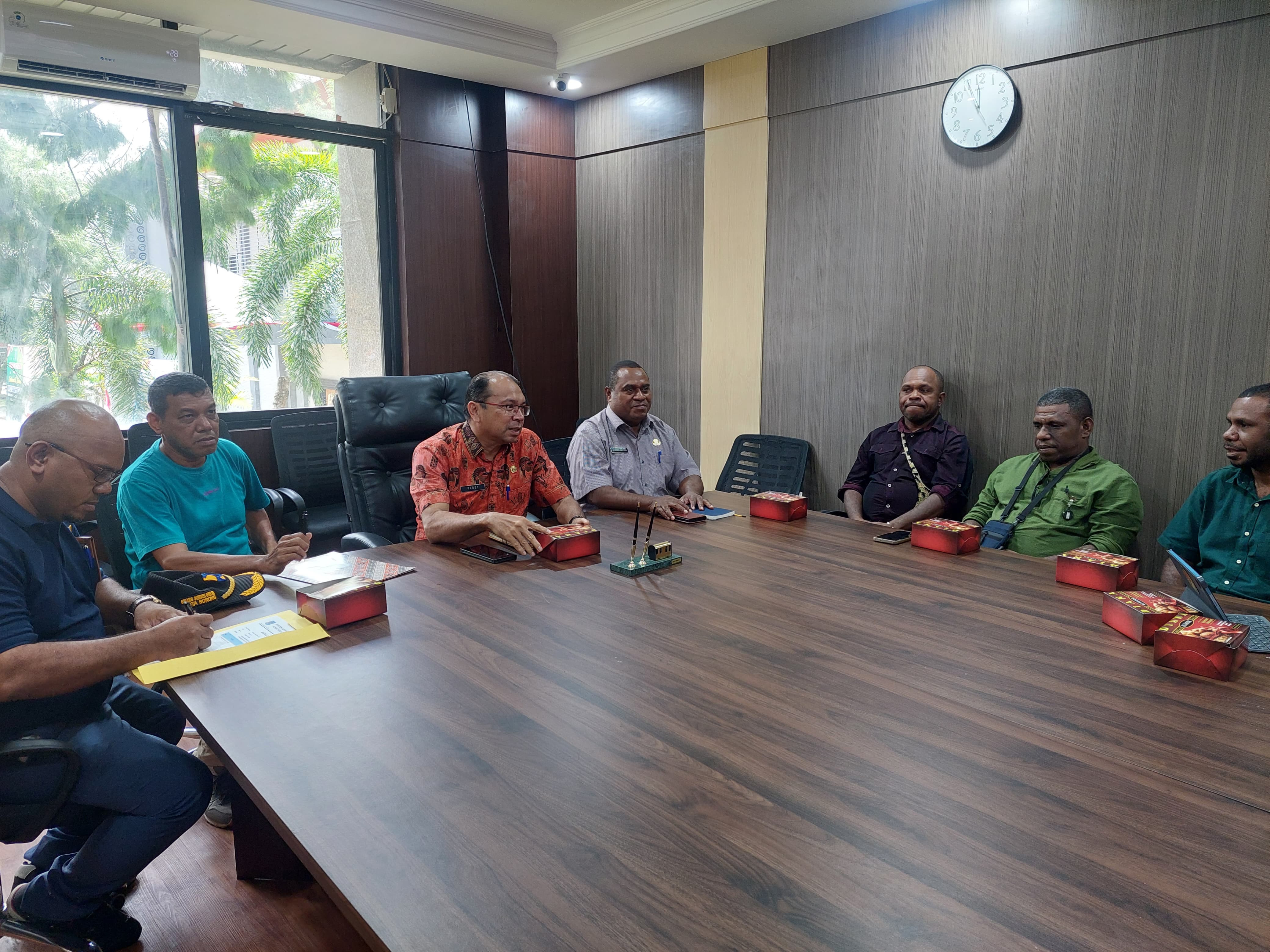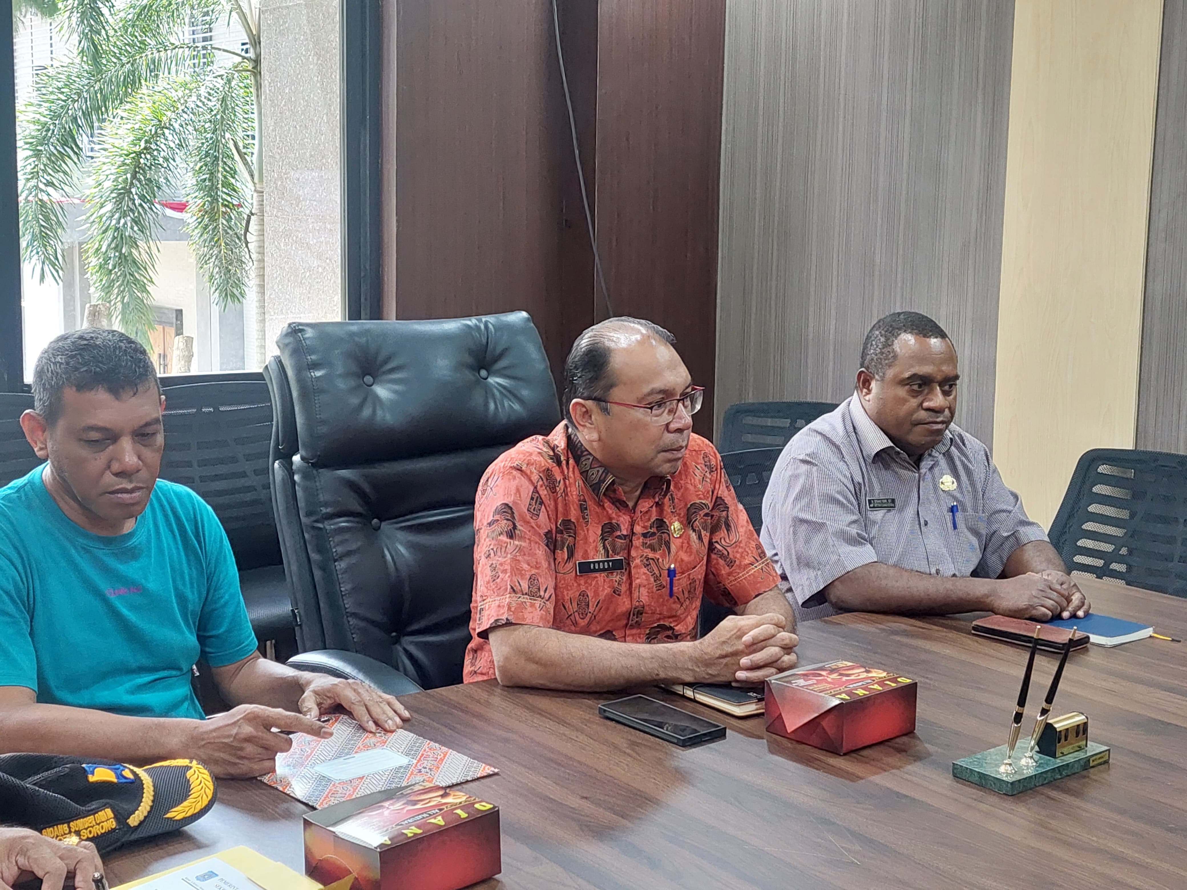 Plt. Sekda Kota Sorong, Rudy R. Laku, S.Pi., MM., didampingi oleh Esau Isir, ST., selaku Kepala Dinas Cipta Karya Kota Sorong, menerima Audiensi bersama Forum Konsultan Orang Asli Papua Kota Sorong. Ruang Rapat Sekda Kota Sorong. Jumat, (1/7/2025).