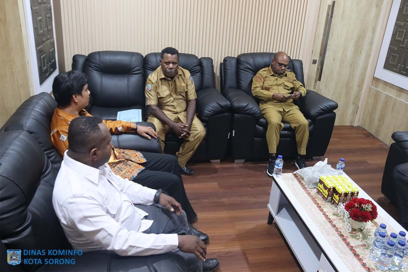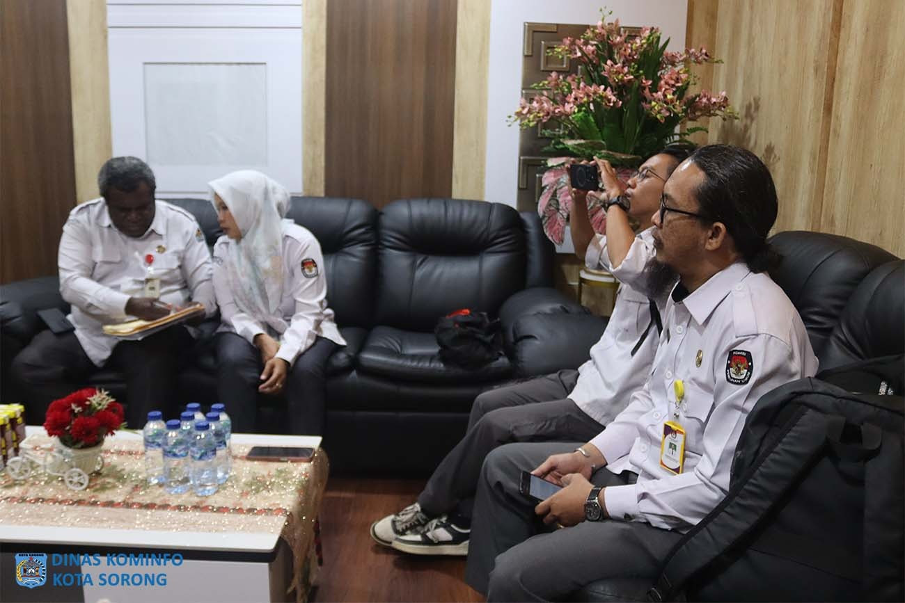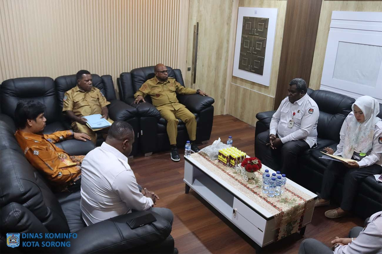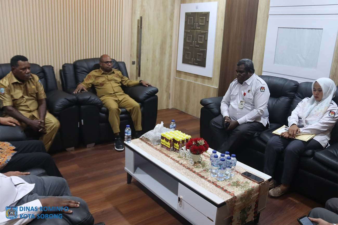 Ketua Komisi Pemilihan Umum (KPU) Kota Sorong, Hilman Djafar, didampingi Sekretaris, Bendahara, Kasubag, dan staf, melakukan audiensi dengan Wali Kota Sorong, Septinus Lobat, S.H., MPA., di ruang kerja Wali Kota, Senin (19/5/2025) siang.