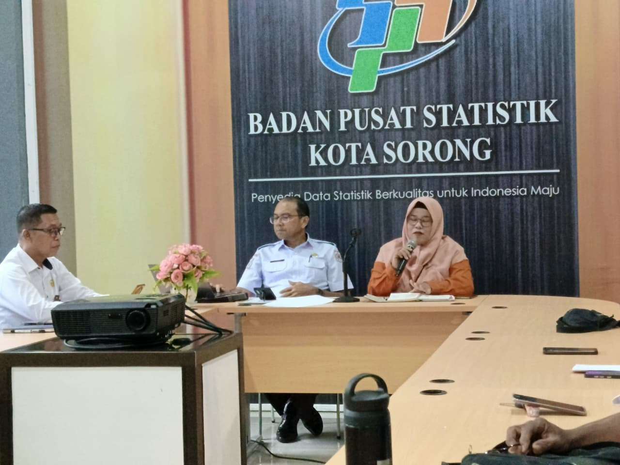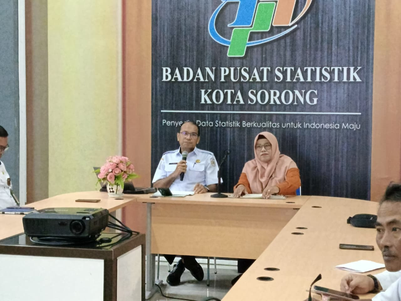 Kota Sorong - Plt. Sekretaris Daerah Kota Sorong, Rudy R. Laku, S.Pi., MM, didampingi oleh Asisten II Bidang Perekonomian dan Pembangunan Setda Kota Sorong, H. Thamrin Tajuddin, S. T., M.M., serta Kepala BPS Kota Sorong, Rumilah Natratilova,S.Si., M.Ec.Dev., hadir dan resmi membuka Acara Sosialisasi Indikator Strategis Kota Sorong dan Sosialisasi Sensus Ekonomi. Ruang Rapat BPS Kota Sorong. Rabu, (24/9/2025).
