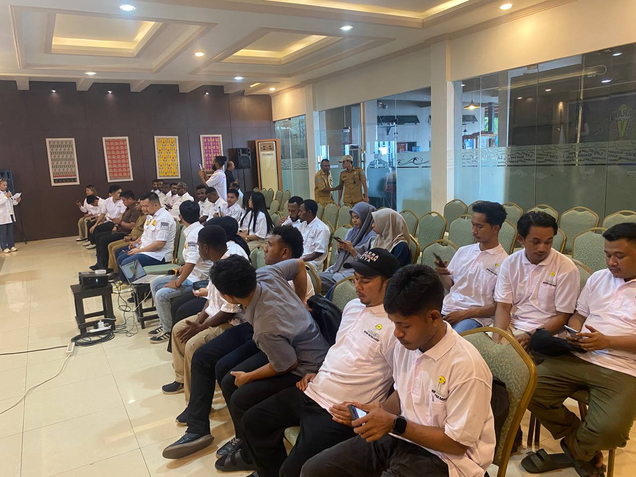 Usai Sambutan, Wali Kota Sorong Bersama perwakilan Polresta Sorong Kota, serta BPD HIPMI Papua Barat membuka secara resmi Musda HIPMI ke - V, dengan menabuh tifa. (Dinas Kominfo Kota Sorong).