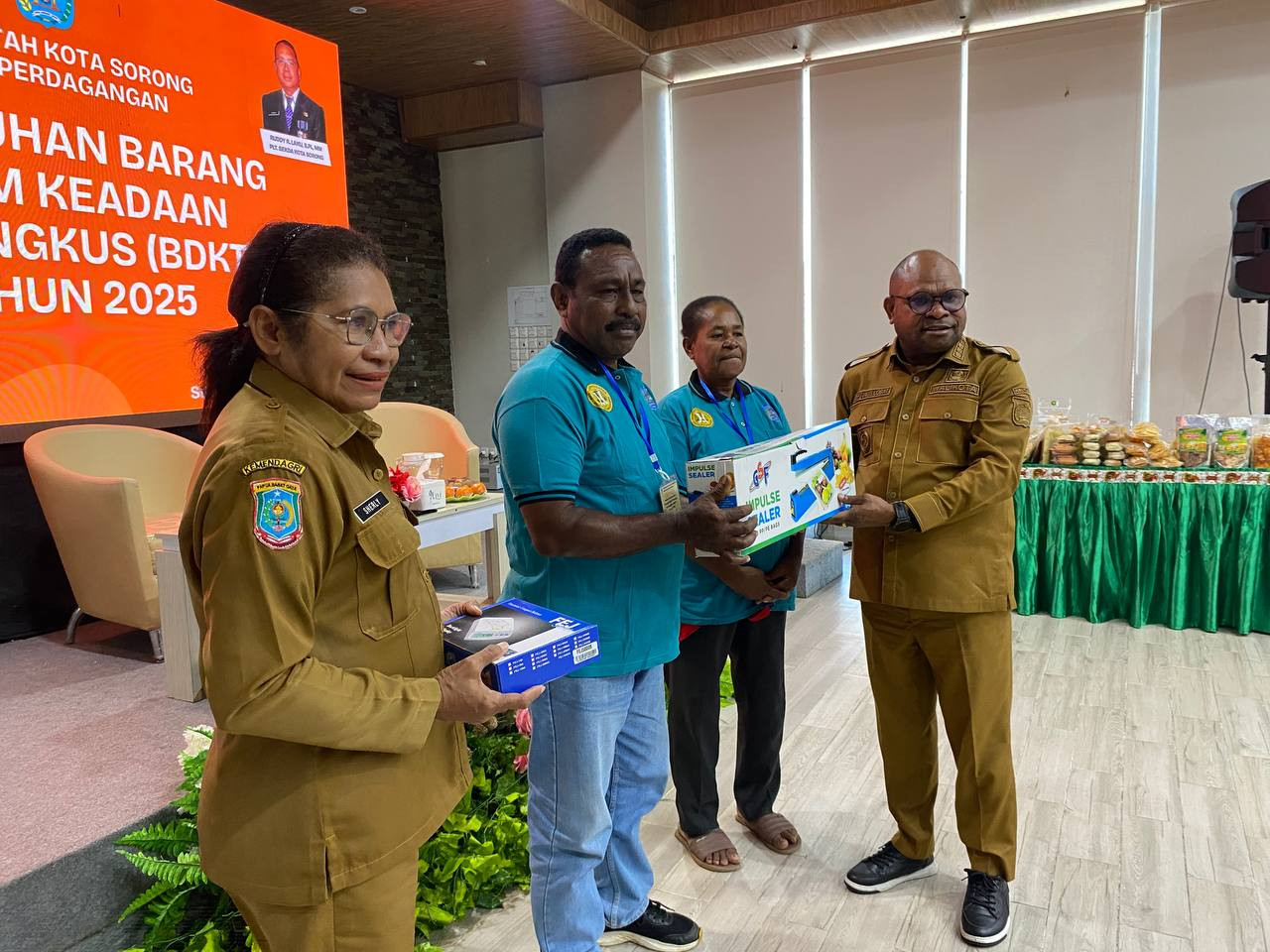 Maksud dan Tujuan Kegiatan Maksud dari pelaksanaan kegiatan "Penyuluhan Barang Dalam Keadaan Terbungkus (BDKT) Tahun 2025" yaitu untuk memberikan pemahaman/pengetahuan kepada pelaku saha barang dalam keadaan terbungkus khusunya Prade Asti Papua terkait cara pengemasan dan pelabelan produk yang sesuai dengan peraturan/regulasi yang berlaku. Tujuan kegiatan ini yaitu agar para pelaku usaha khususnya Orang Asli Papua dapat menghasilkan produk dalam kemasan yang sesuai dengan peraturan yang berlaku agar dapat masuk dan bersaing dalam pasar Lokal, Nasional maupun Internasional. Waktu dan Tempat Pelaksaan Kegiatan Kegiatan "Penyuluhan Barang Dalam Keadaan Terbungkus (BDKT) Tahun 2025" dilaksanakan selama 1 hari yaitu pada tanggal 30 September 2025 yang Bertempat di Hotel Rylich Panorama Kota Sorong. Peserta Kegiatan Peserta kegiatan "Penyuluhan Barang Dalam Keadaan Terbungkus (BDKT) Tahun 2025" adalah sebanyak 60 Orang pelaku usaha khusus Orang Asli Papua. DAN REKANZ DAM UPTY ML KAB SORONE yOu igin Menimbi ILMu terbuit BDKT Narasumber Narasumber kegiatan "Penyuluhan Barang Dalam Keadaan Terbungkus (BDKT) Tahun 2025 yaitu sebanyak 2 Orang yang berasal dari Direktorat Metrologi Ditjen PKTN Kementerian Perdagangan RI. Sumber Dana Kegiatan Sumber Dana/anggaran kegiatan "Penyuluhan Barang Dalam Keadaan Terbungkus (BDKT) Bagi Pelaku Usaha Grang Asli Papua (OAP) Tahun 2025" berasal dari Dana Otonomi Khusus (Otsus) Tahun 2025 pada DPA Dinas Perdagangan Kota Sorong.