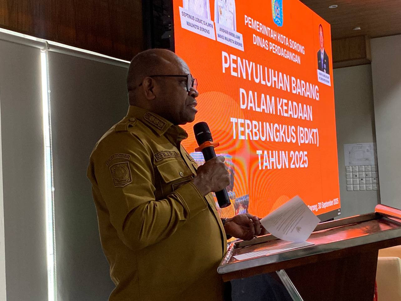 "Kita punya ekonomi bagus, maka kita bisa keluar dari kesulitan," Ucap Wali Kota Sorong, Septinus Lobat, S.H., MPA., dalam sambutanya di acara pembukaan Penyuluhan Barang Dalam Keadaan Terbungkus (BDKT) Tahun 2025, yang diselenggarakan oleh Dinas Perdagangan, di Hotel Rylich Panorama, Kota Sorong. Selasa, (30/9/2025).