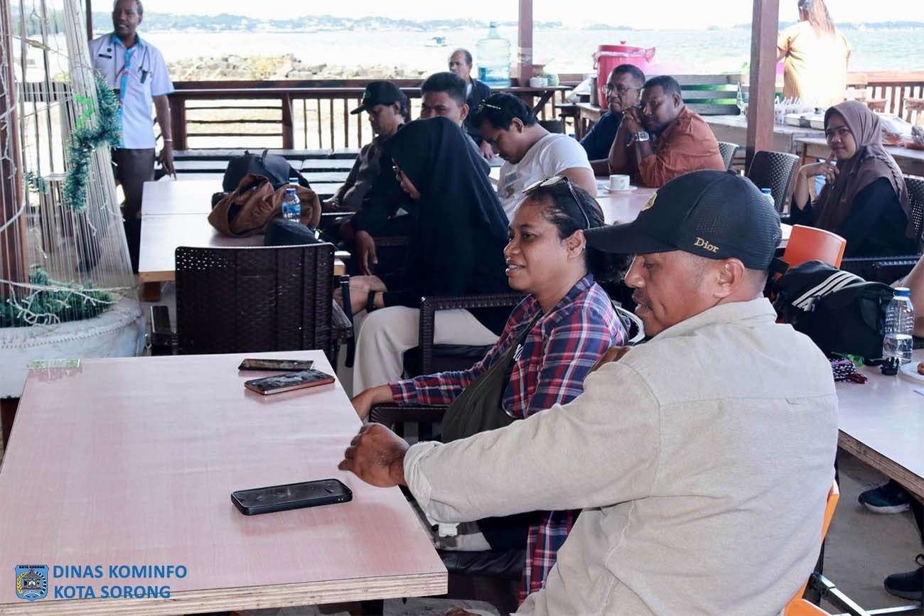 Kota Sorong - Wakil Wali Kota Sorong, Anshar Karim, A.Md, menghadiri kegiatan Coffee Morning dan tatap Muka Perdana bersama Insan Pers, yang digelar Dinas Komunikasi dan Informatika Kota Sorong di Pantai Kasarea, kelurahan Suprau, Distrik Maladu Mes, Rabu (28/5/2025), siang.