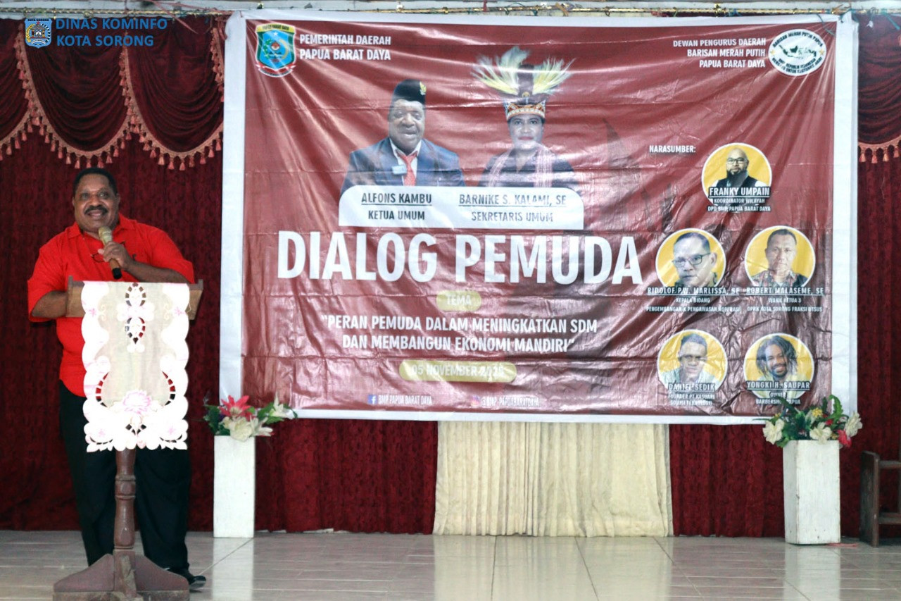 ππ¨ππ ππ¨π«π¨π§π - Dewan Pengurus Daerah Barisan Merah Putih (DPD BMP) Provinsi Papua Barat Daya (PBD) mendorong generasi muda agar berperan aktif membangun kemandirian ekonomi, dan meningkatkan sumber daya manusia melalui dialog pemuda bertema, βPeran Pemuda dalam Meningkatkan SDM dan Membangun Ekonomi Mandiriβ, yang digelar di Aula YPK 2, Rabu (5/11/2025).