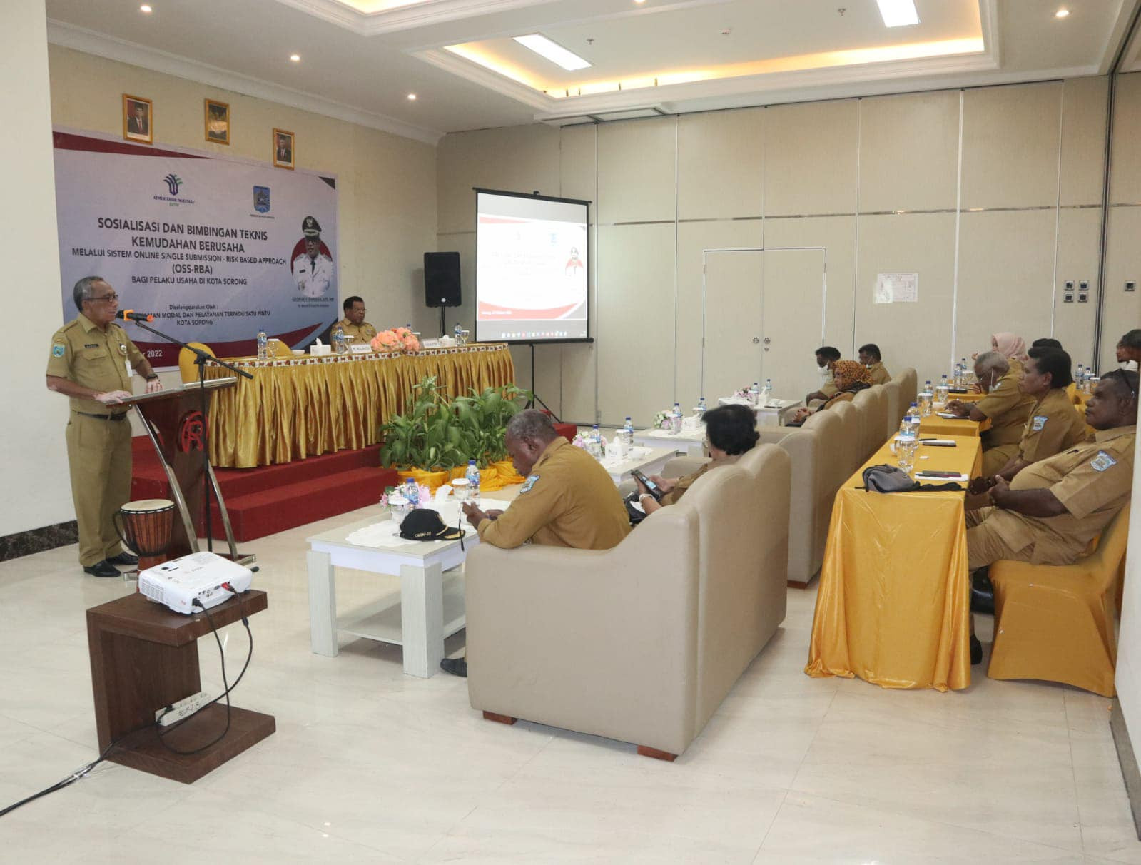 Dinas Penanaman Modal dan Pelayanan Terpadu Satu Pintu (DPMPTSP) Kota Sorong menggelar Sosialisasi dan Bimbingan Teknis (Bimtek) Kemudahan Berusaha melalui sistem Online Single Submission-Risk Based Approach (OSS-RBA), bagi pelaku usaha di Kota Sorong, Senin (24/10/2022) di Rylich Panorama Hotel.