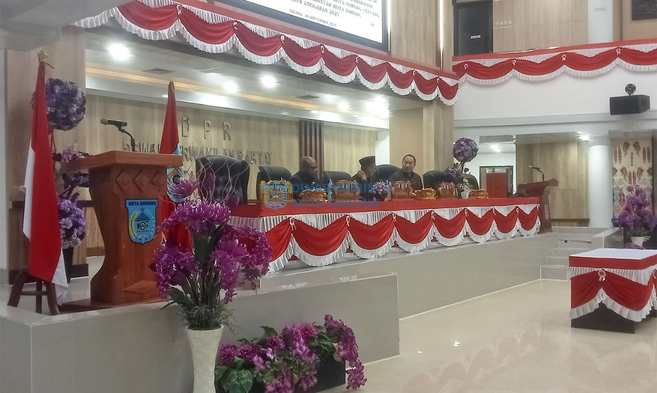 Kota Sorong - Dewan Perwakilan Rakyat Kota (DPRK) Sorong akhirnya menyetujui Rancangan Anggaran Pendapatan dan Belanja Daerah (RAPBD) Perubahan Tahun Anggaran 2025. Persetujuan itu disampaikan dalam Rapat Pleno XXVI Paripurna XXIV Masa Sidang 2025, dengan agenda Penyampaian Pendapat Akhir Fraksi-Fraksi dan Kelompok Khusus DPRD Kota Sorong, yang berlangsung di Ruang Rapat Kantor DPRK Sorong, Selasa (30/9/2025) siang.