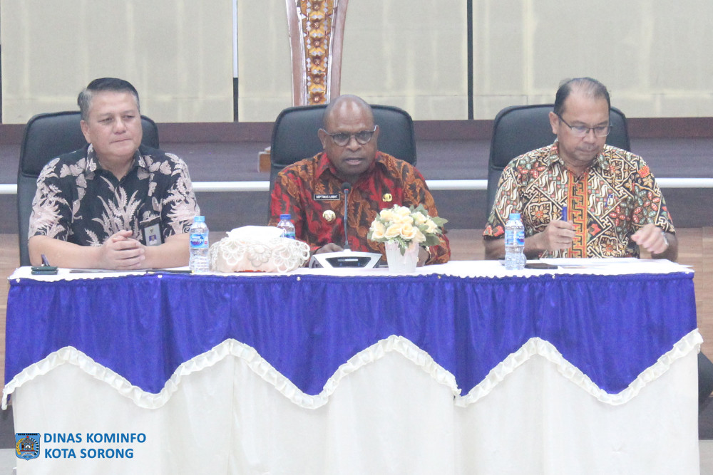 KOTA SORONG – Penjabat Wali Kota Sorong, Septinus Lobat, S.H., MPA meminta kepada seluruh pimpinan Organisasi Perangkat Daerah (OPD) di lingkungan Pemerintah Kota Sorong, untuk dapat memberikan data yang benar dan akurat, pada saat pelaksanaan pemeriksaan oleh Badan Pemeriksa Keuangan (BPK) Perwakilan Provinsi Papua Barat selama 53 hari ke depan.