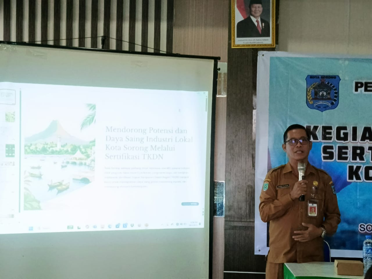 Pemerintah Kota Sorong melalui Dinas Perindustrian Kota Sorong melaksanakan kegiatan Fasilitasi Sertifikasi Tingkat Komponen Dalam Negeri (TKDN) Tahun Anggaran 2025. Kegiatan ini dibuka secara resmi oleh Asisten II Bidang Perekonomian dan Pembangunan Setda Kota Sorong, H. Thamrin Tajuddin, S. T., M.M., yang juga menjadi narasumber pada hari pertama pelaksanaan. Gedung Pertemuan Ikaswara. Senin, (6/10/2025).