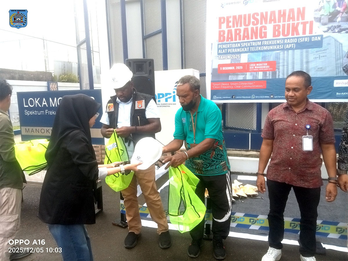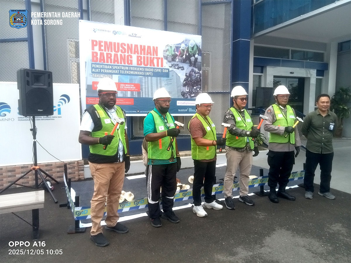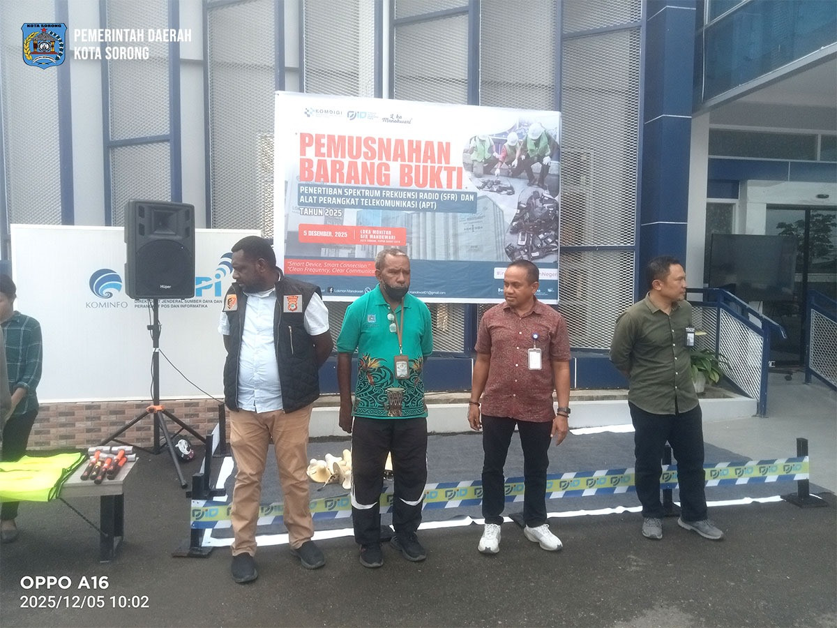 Pemusnahan dilakukan di halaman kantor Loka Monitor SFR Manokwari di Kota Sorong, Jumat (5/12/2025) pagi, yang juga dihadiri Kepala Seksi Aplikasi pada Bidang Aplikasi Telematika Dinas Komunikasi dan Informatika Kota Sorong, Yunus Mamae, S.E., yang mewakili Kepala Dinas Kominfo Kota Sorong.
