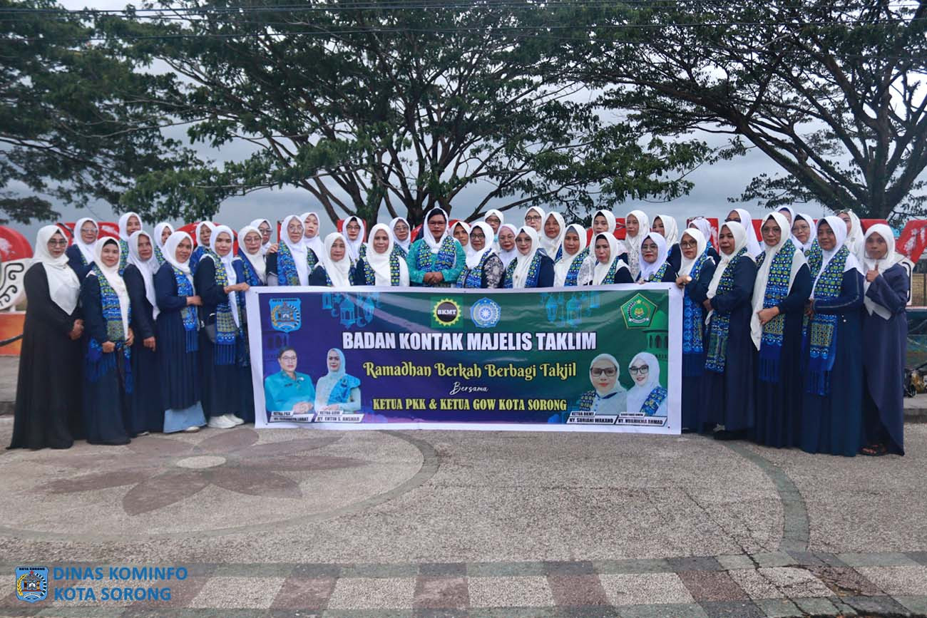 Kota Sorong - Gabungan Organisasi-Organisasi Wanita Kota Sorong, yang terdiri dari Tim Penggerak Pemberdayaan dan Kesejahteraan Keluarga (TP PKK), Gabungan Organisasi Wanita (GOW), Dharma Wanita Persatuan (DWP), dan Badan Kontak Majelis Taklim (BKMT), menggelar pembagian takjil bagi umat Muslim yang menjalankan ibadah puasa, yang berlangsung di depan Bandara DEO, Sorong City, Rabu (19/3/2025) sore.