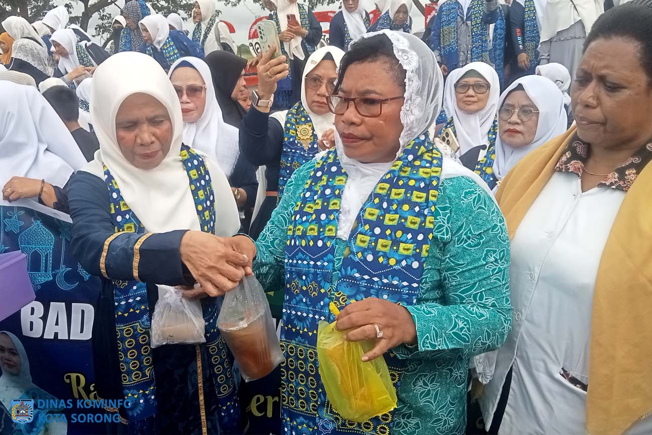 Penasehat Gabungan Organisasi-Organisasi Wanita Kota Sorong, yang juga Ketua TP PKK Kota Sorong, Jemima Elisabeth Lobat, S.K.M., M.A.P., dalam sambutannya menyampaikan, kegiatan ini merupakan bentuk kepedulian dan kebersamaan organisasi wanita dengan masyarakat yang tengah menjalankan ibadah puasa Ramadan.