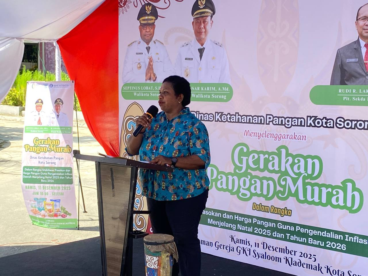 Kota Sorong , 11 Desember 2025 – Pemerintah Kota Sorong melalui Dinas Ketahanan Pangan hari ini melaksanakan Gerakan Pangan Murah di Halaman Gereja GKI Syaloom Klademak Kota Sorong, sebagai langkah strategis untuk mengendalikan inflasi dan memastikan ketersediaan pangan dengan harga terjangkau menjelang perayaan Natal 2025 dan Tahun Baru 2026.