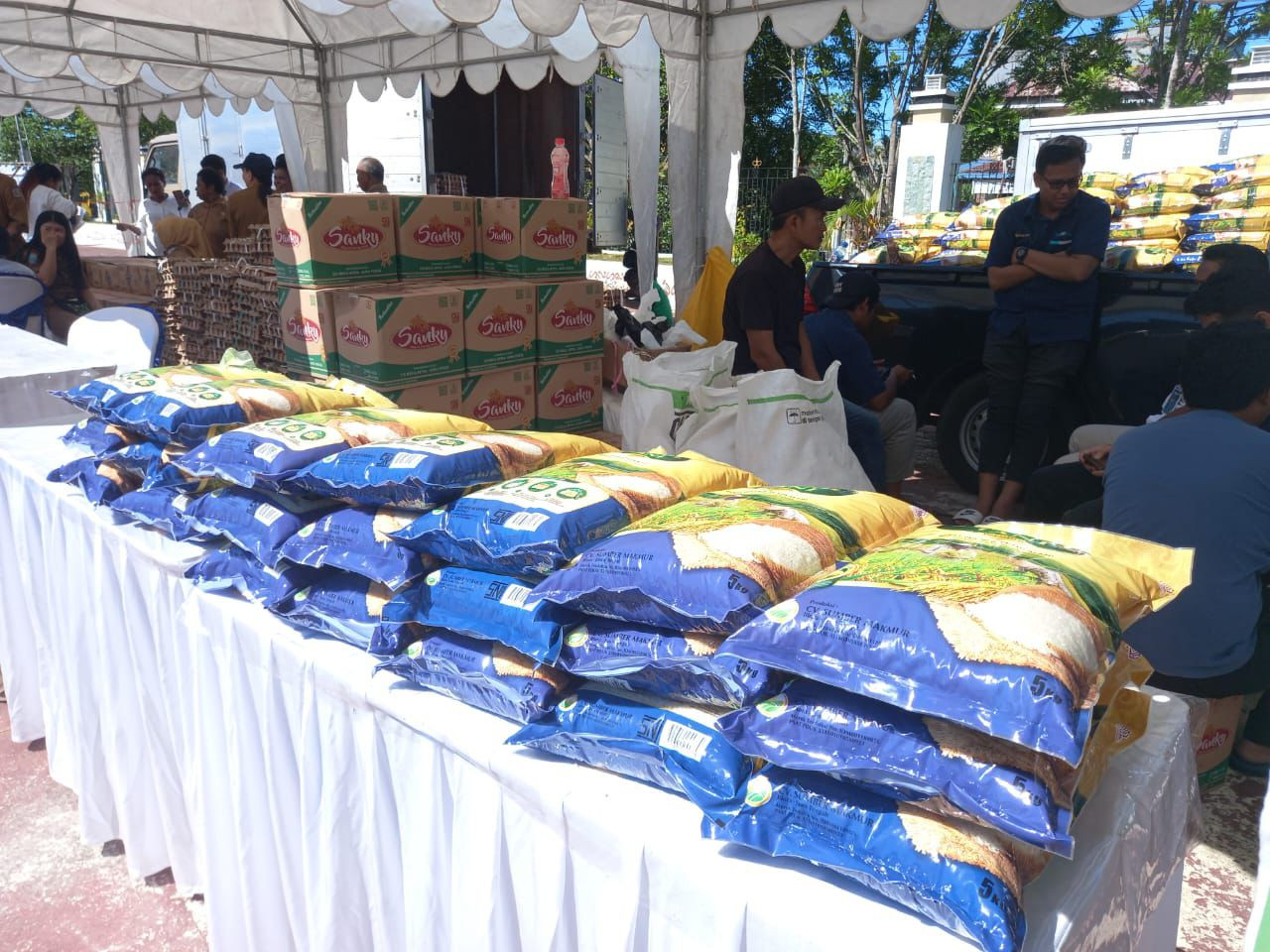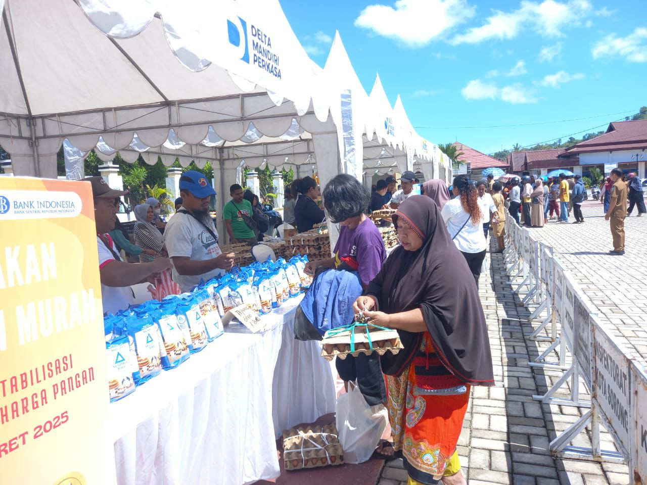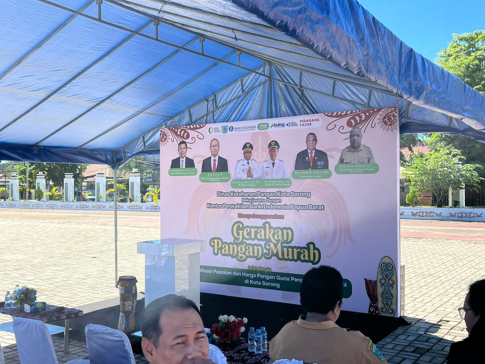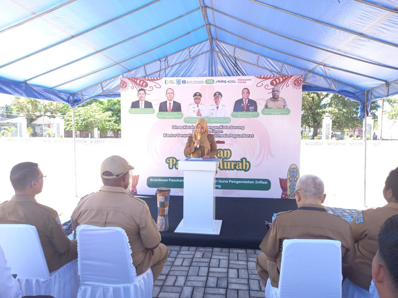 Wali Kota Sorong, Septinus Lobat, S.H., MPA., dan Wakil Wali Kota Sorong, H. Anshar Karim, A.Md., yang diwakili oleh Asisten Il Setda Kota Sorong Thamrin Tajuddin., S.T., MM, hadir sekaligus membuka kegiatan Gerakan Pangan Murah tahun 2025. Pemerintah Kota Sorong melalui Dinas Ketahanan Pangan Kota Sorong bekerja sama dengan Kantor Perwakilan Bank Indonesia Provinsi Papua Barat menggelar Gerakan Pangan Murah ini. Kegiatan ini bertujuan untuk menstabilkan pasokan dan harga pangan sebagai bagian dari upaya pengendalian inflasi daerah. Kegiatan ini dilaksanakan di lapangan apel kantor Wali Kota Sorong. Selasa, (27/05/2025).
