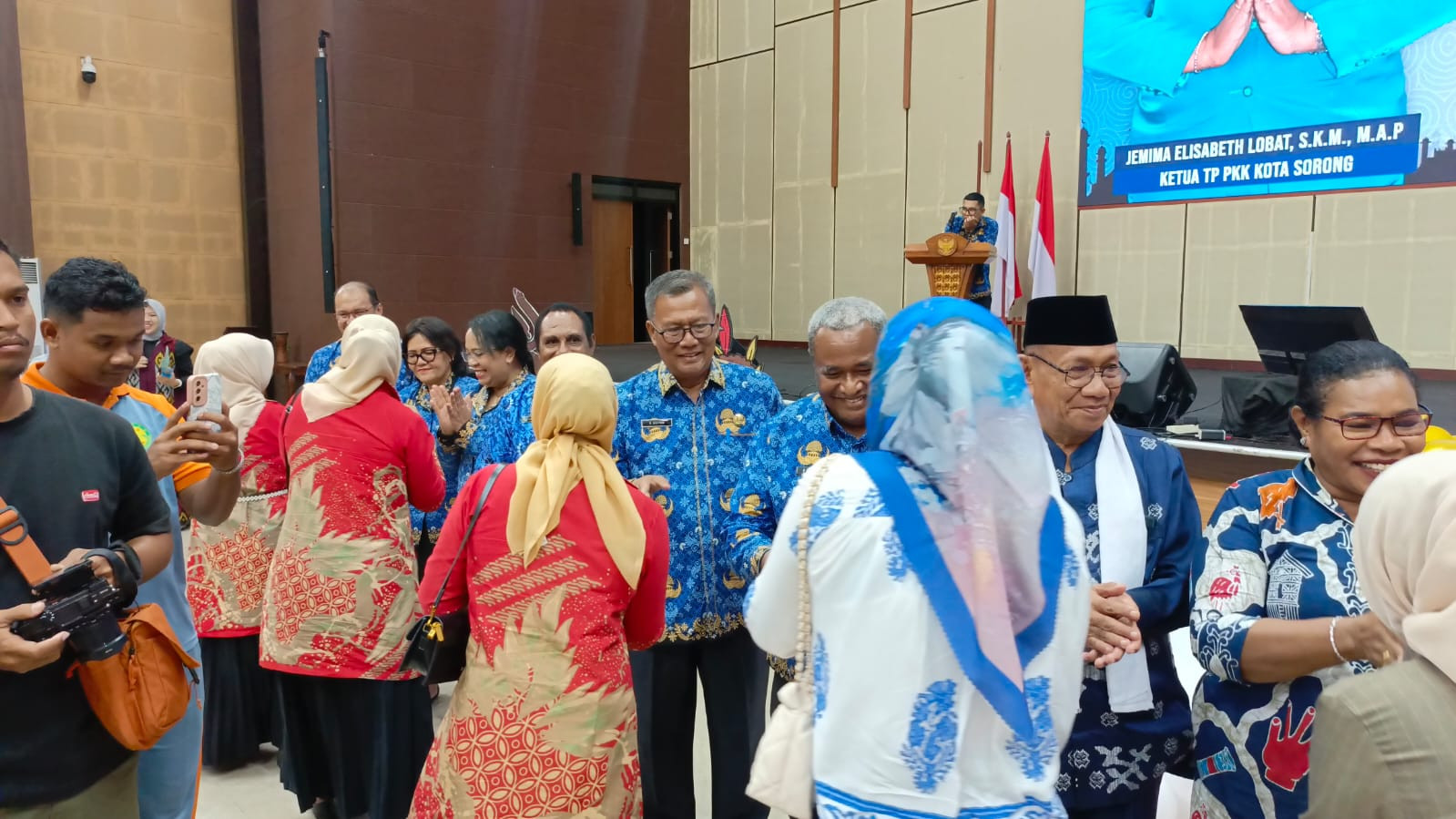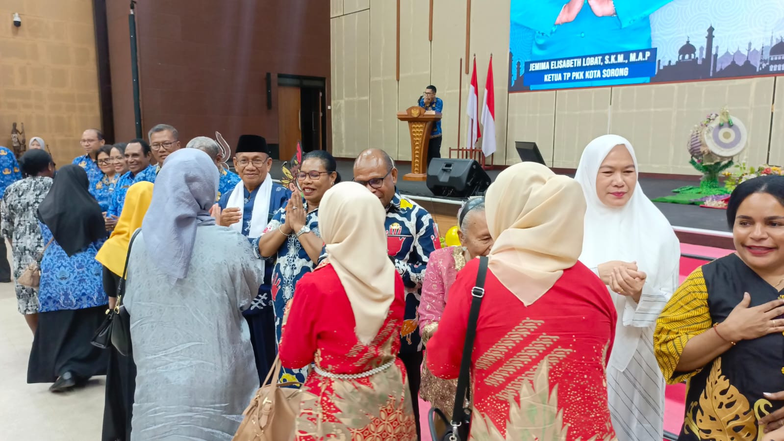 Pemerintah Kota Sorong bersama Tim Penggerak Pemberdayaan dan Kesejahteraan Keluarga (TP-PKK) Kota Sorong serta Gabungan Organisasi Wanita (GOW) se-Kota Sorong menggelar acara Halal Bi Halal yang berlangsung hangat dan penuh keakraban di Gedung Lambert Jitmau, Kota Sorong. (25/4/2025).