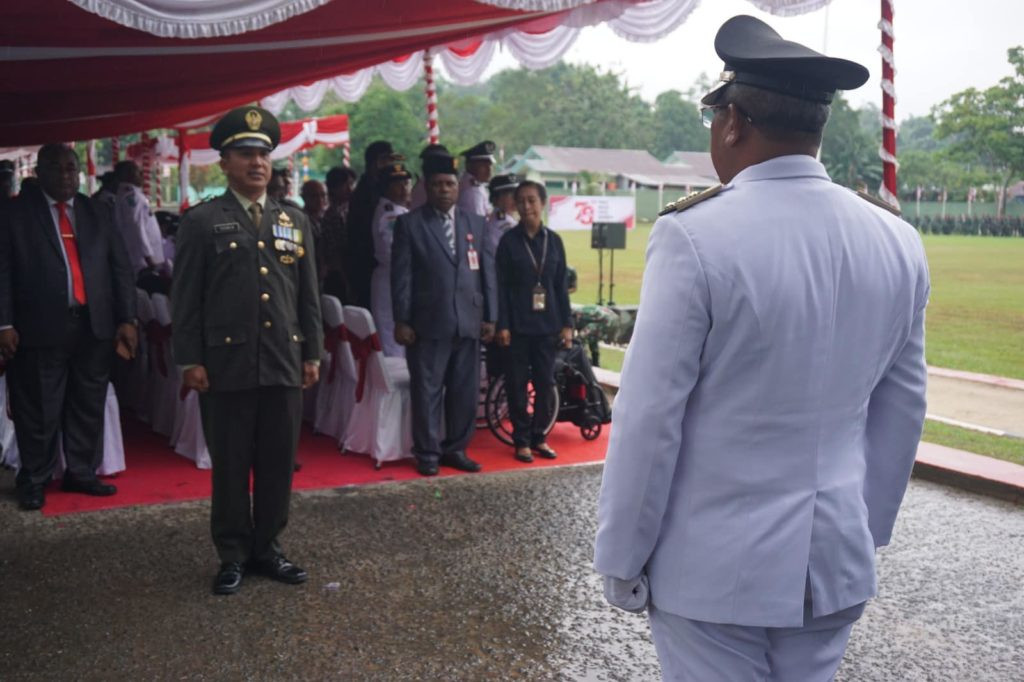 KOTA SORONG – Pada Pagi hari ini, Pj. Wali kota Sorong, George Yarangga, A.PI. MM., menjadi Pembina Upacara Pengibaran Bendera Merah Putih, dalam rangka HUT Ke-78 Proklamasi Kemerdekaan Republik Indonesia. Lapangan Korem 181/PVT. Kamis, (17/8/2023).