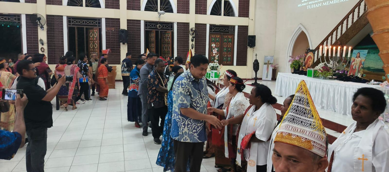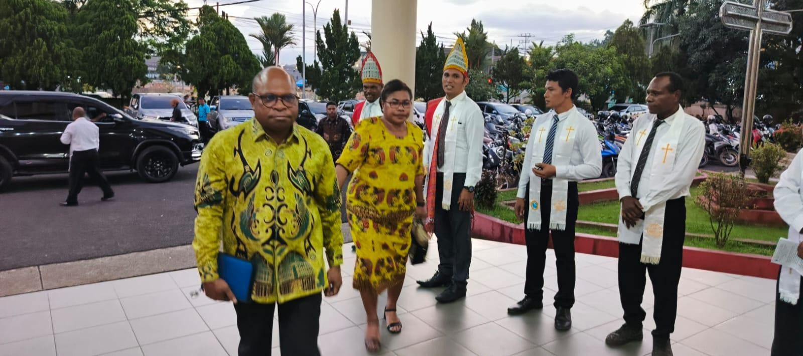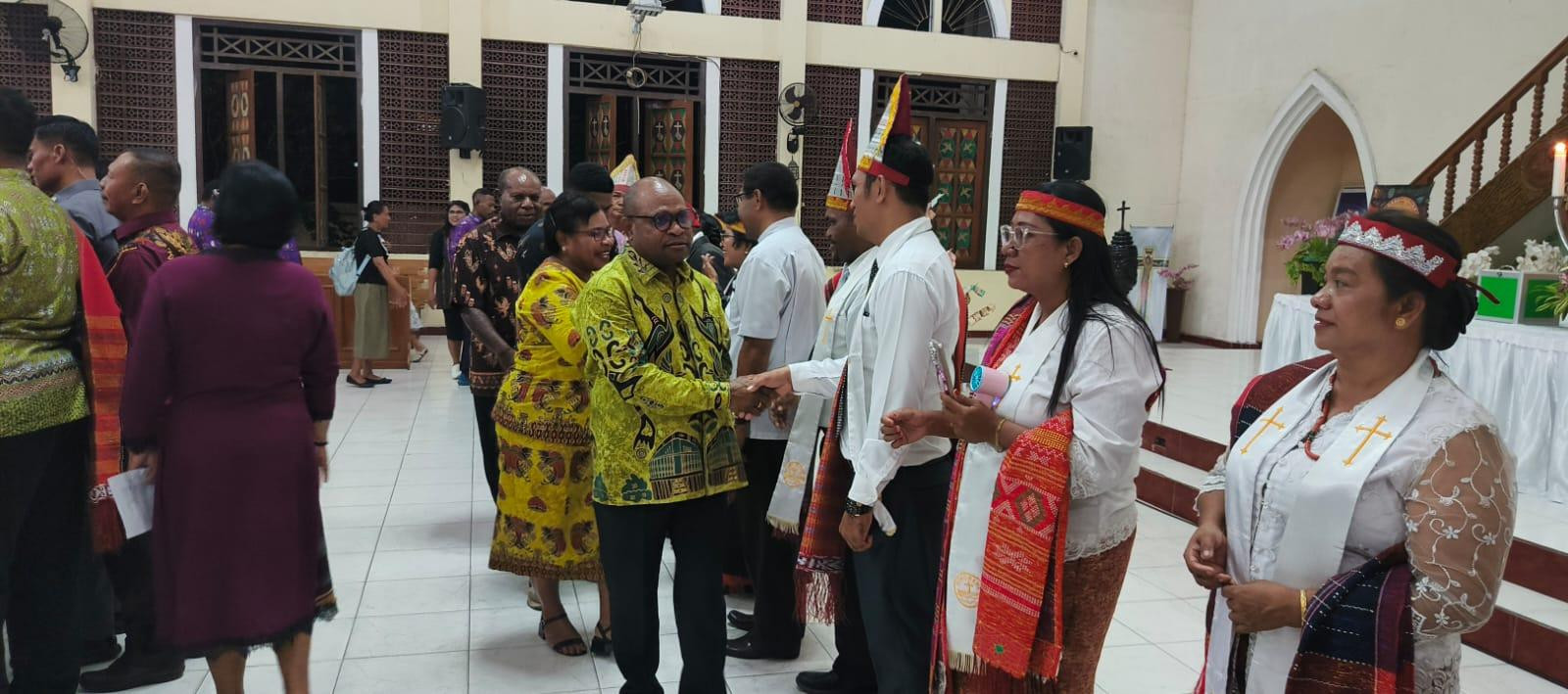 Turut hadir dalam kesempatan tersebut Gubernur Papua Barat Daya, Elisa Kambu, S.Sos. Ibadah berlangsung dengan khidmat di Gereja GKI Maranatha yang berlokasi di Jalan Basuki Rahmat, Kota Sorong.