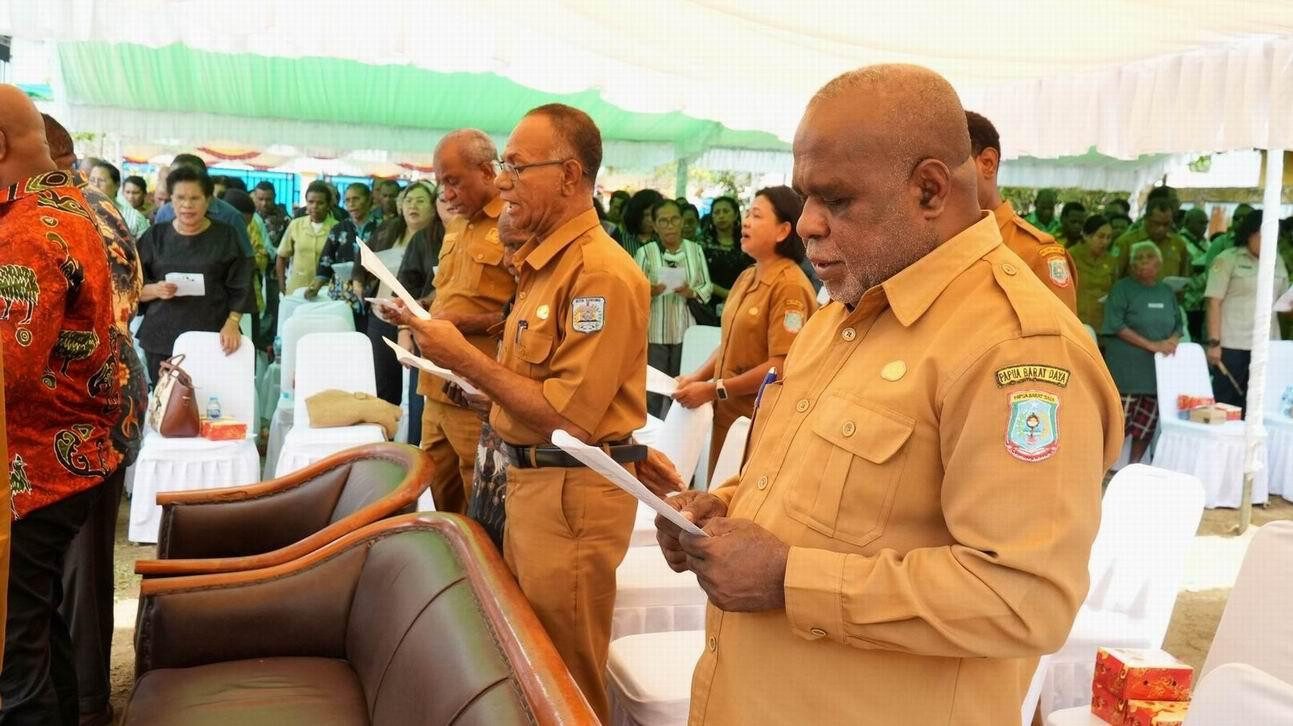 BERITA FOTO : Mewakili Wali Kota Sorong, Plt. Asisten Bidang Administrasi Umum Setda Kota Sorong, Musa Fonataba, S.P., menghadiri Ibadah Pelepasan Almarhum Bapak Drs. Yohanis Nauw, yang bertempat di Rumah Duka Almarhum, Jalan Rejau, Klademak I, Sorpus, Selasa (7/4/2026).