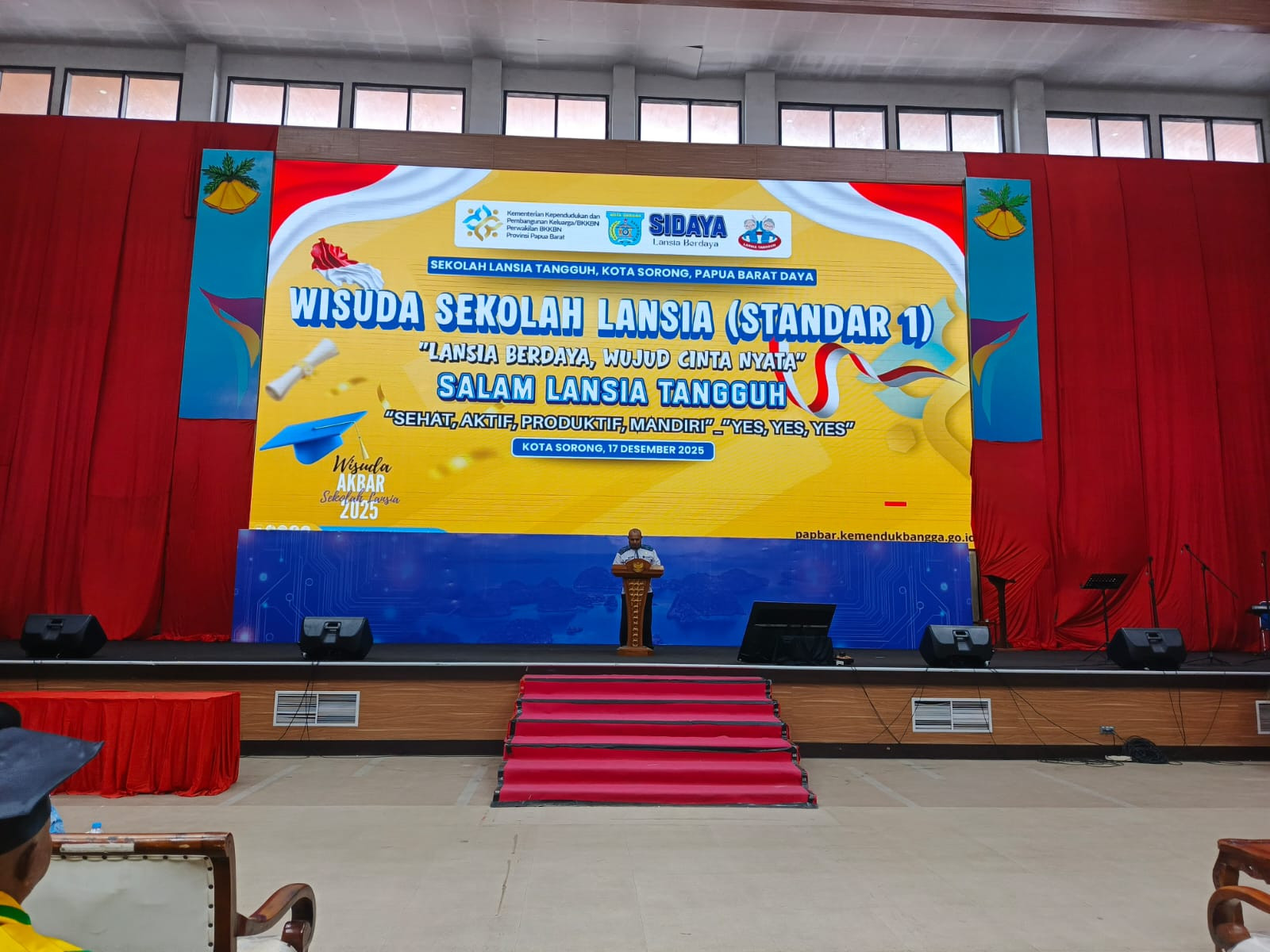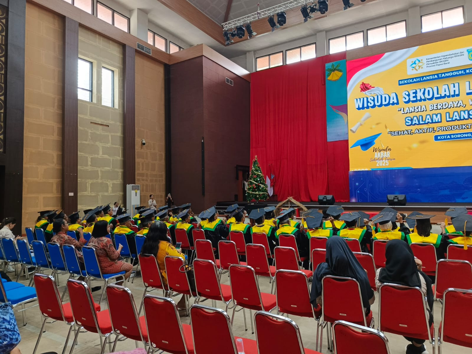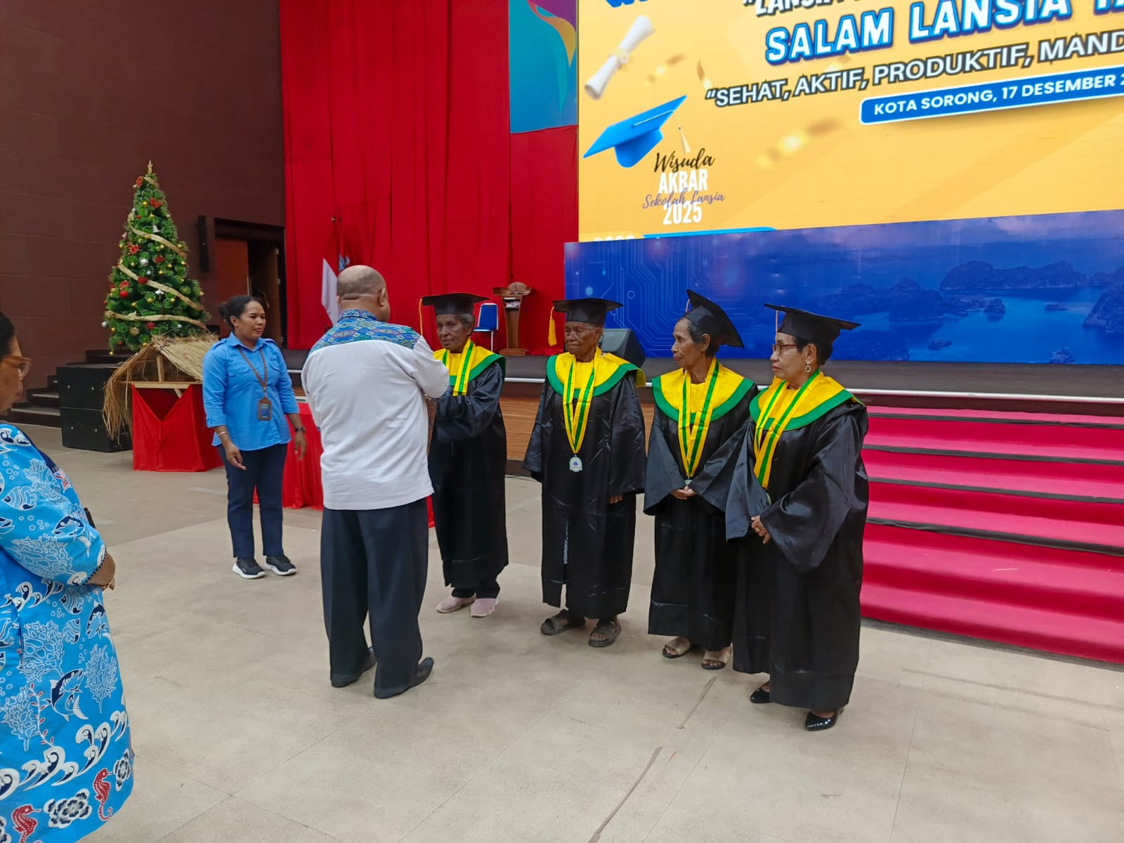 Hal tersebut disampaikan Asisten I Bidang Pemerintahan dan Kesejahteraan Rakyat Kota Sorong, Jeremias Gembenop, S.Sos., M.H, saat mewakili Wali Kota Sorong pada Wisuda Sekolah Lansia Standar I, yang diikuti 43 lansia, di Gedung Lambert Jitmau, Kota Sorong, Rabu (17/12/2025).