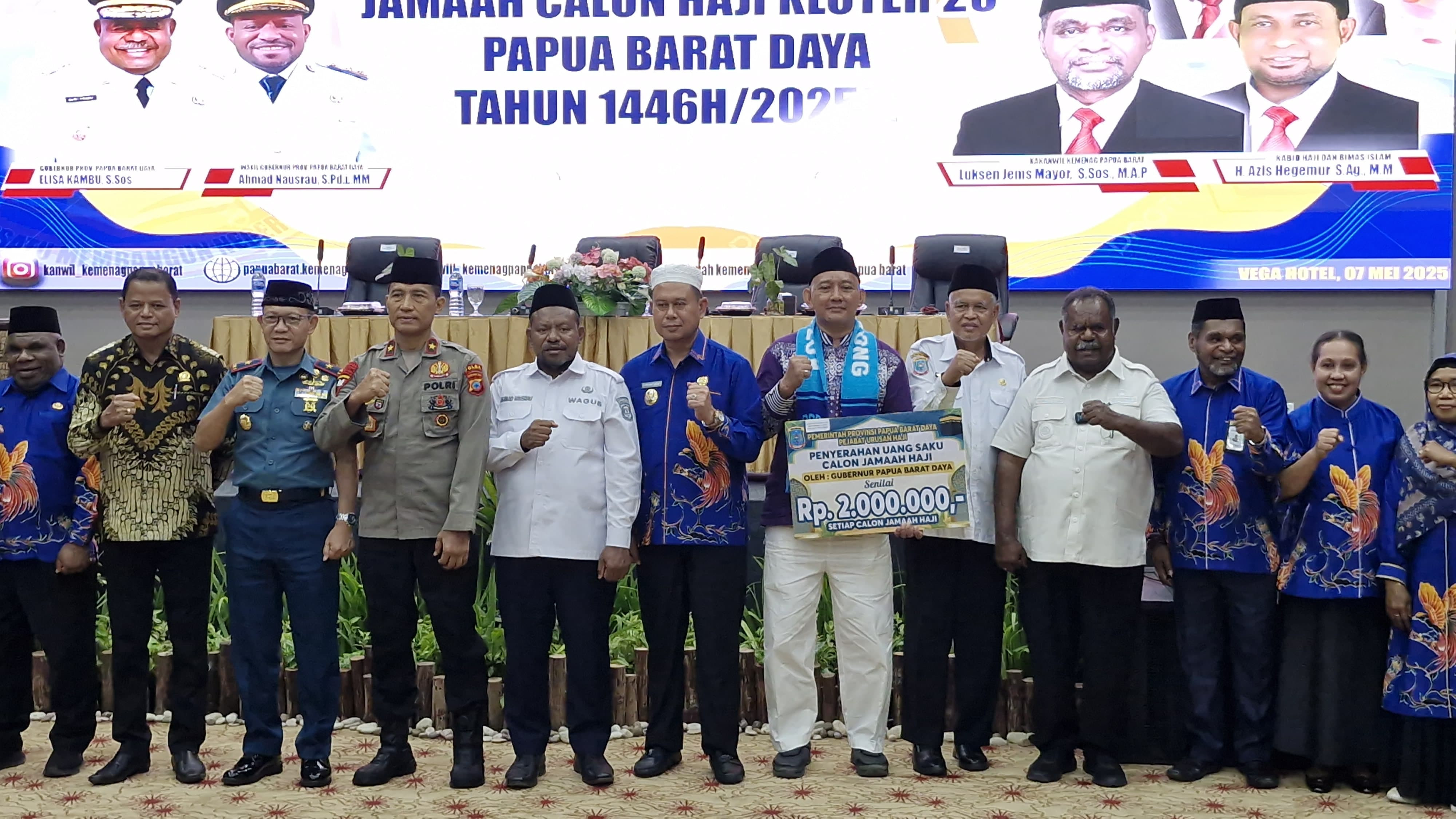 Diserahkan juga secara simbolis, Uang Saku Calon Jemaah Haji oleh Gubernur Provinsi Papua Barayt Daya sebesar Rp. 2.000.000 (Dua Juta Rupiah) untuk masing-masing Calon jemaah Haji. (Dinas Kominfo Kota Sorong).