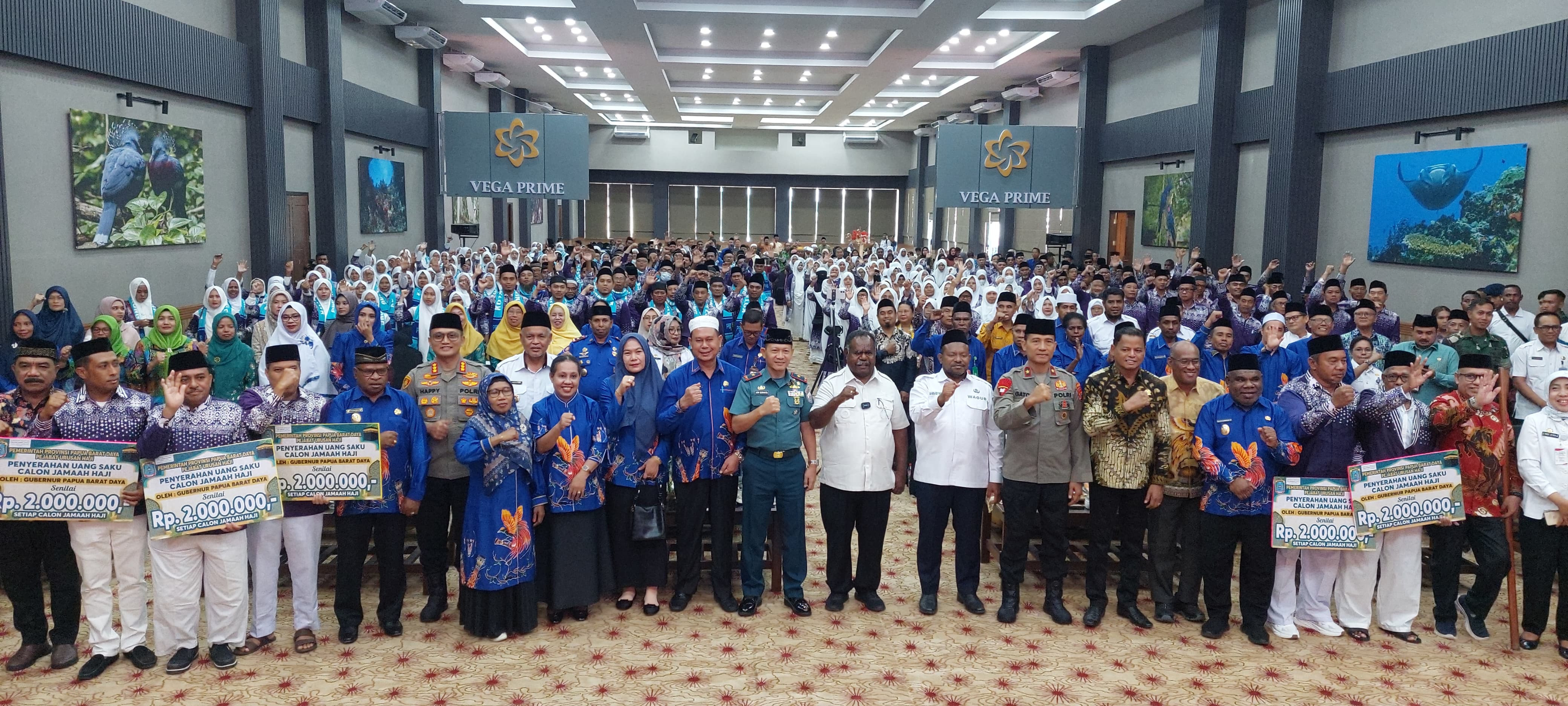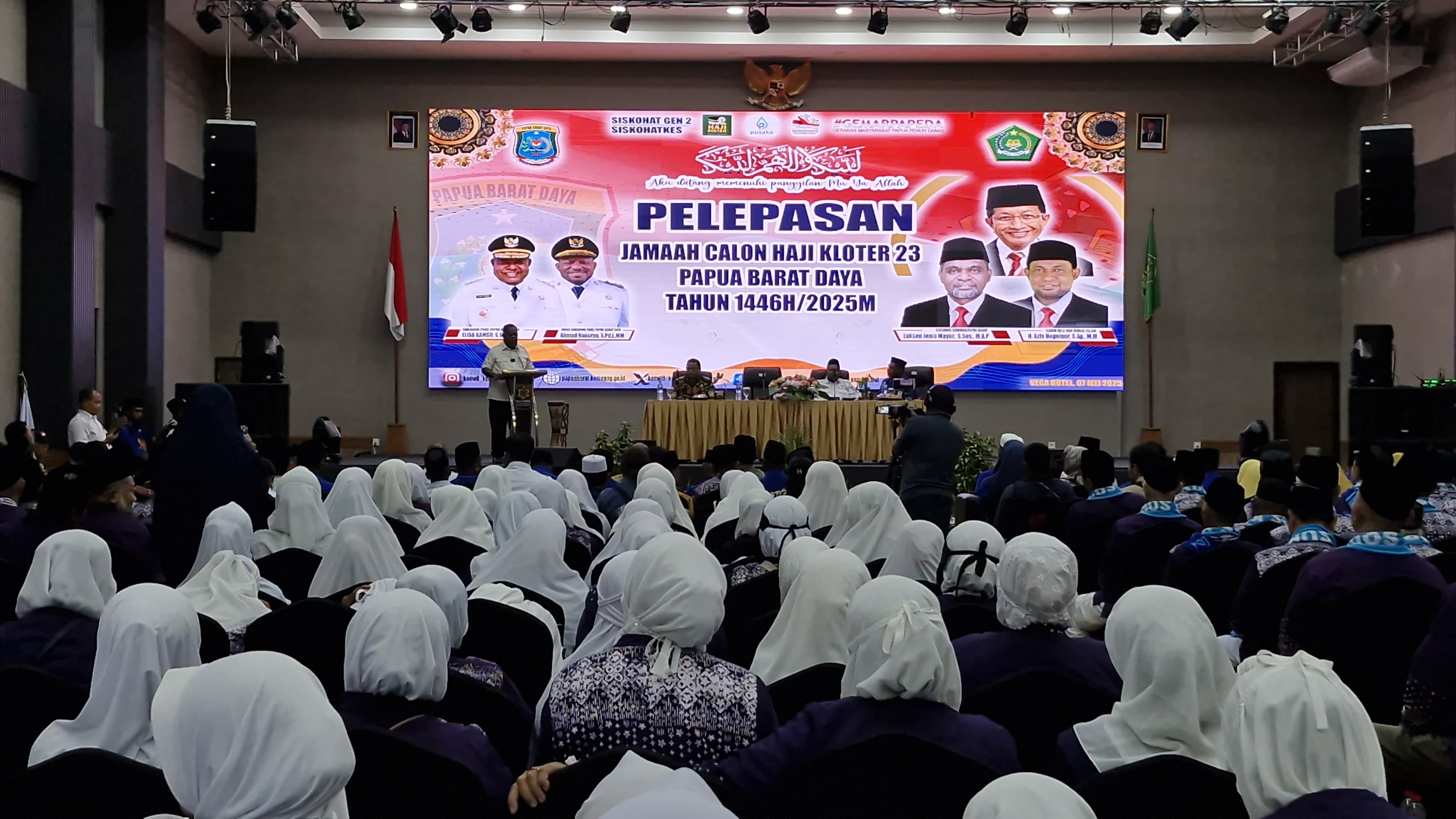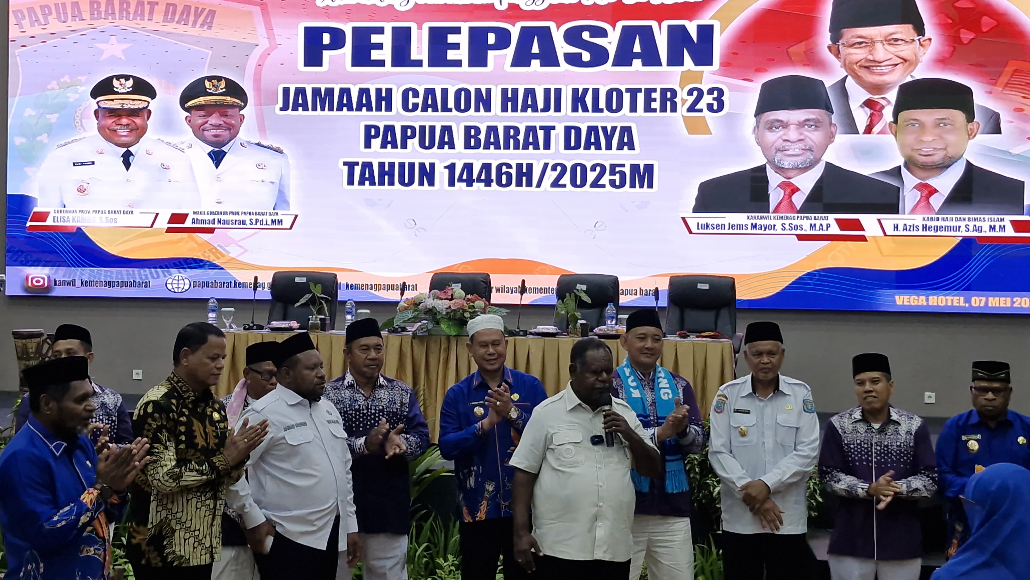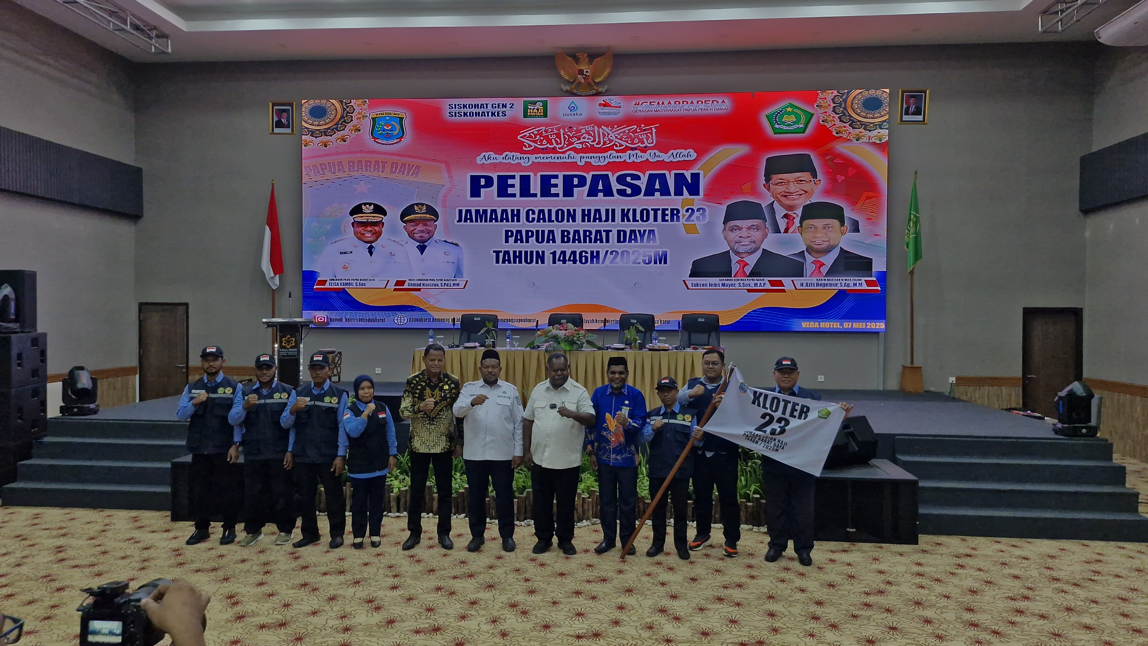 Adapun 293 Calon Jamaah Haji merupakan gabungan Kloter 23 yang berasal dari Kota Sorong, Kabupaten Sorong, Kabupaten Sorong Selatan, dan Kota Makassar resmi dilepas oleh Elisa Kambu, S.Sos., selaku Gubernur Provinsi Papua Barat Daya.