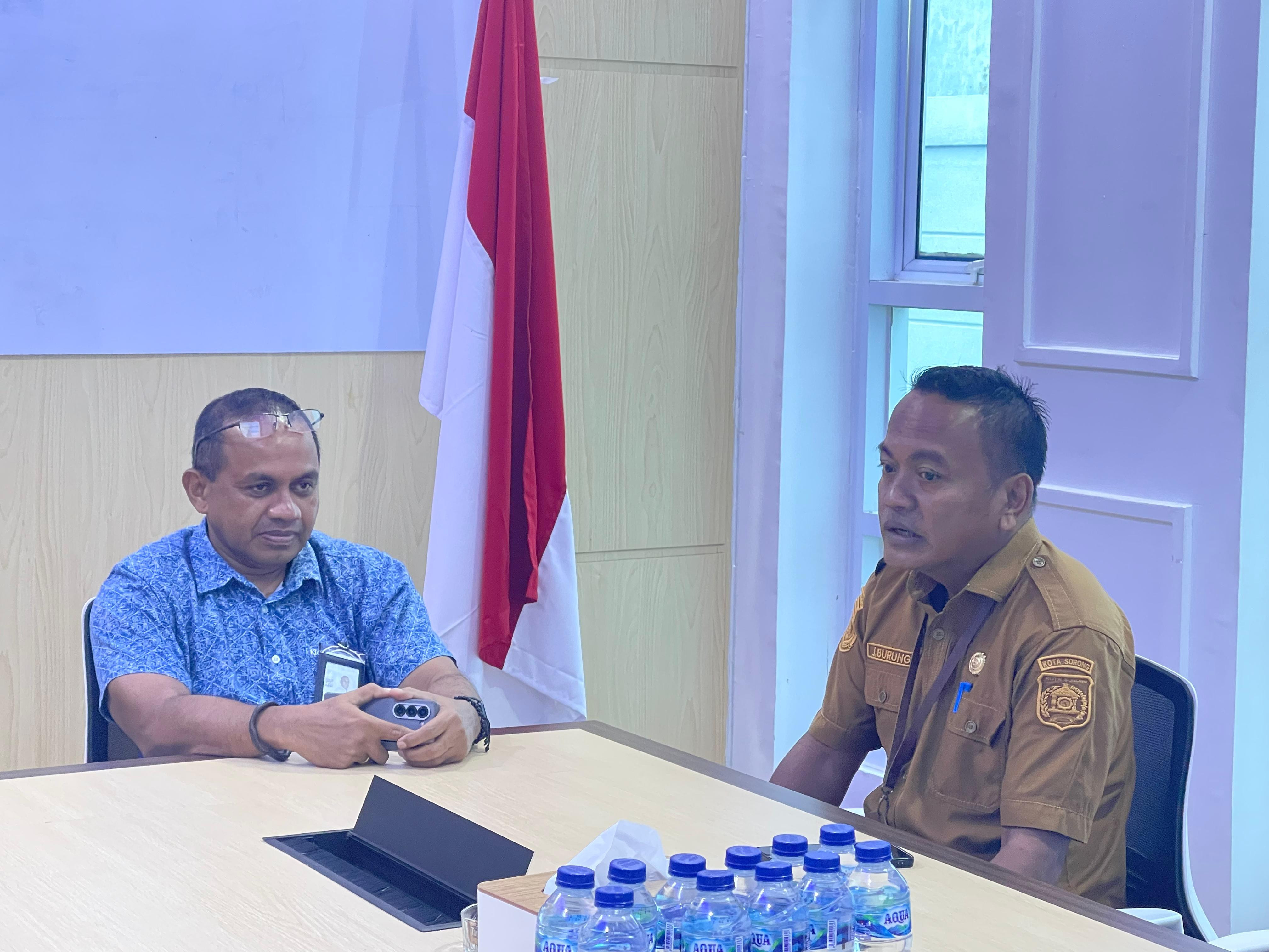 Kepala Dinas Komunikasi dan Informatika Kota Sorong James Burung, S. Sos., M.M., bersama Jajarannya melakukan koordinasi terkait Pengamanan Jaringan Infrastruktur bersama Loka Monitor Spektrum Frekuensi Radio Manokwari. Sorong, (26/8/2025). (Diskominfo Kota Sorong)