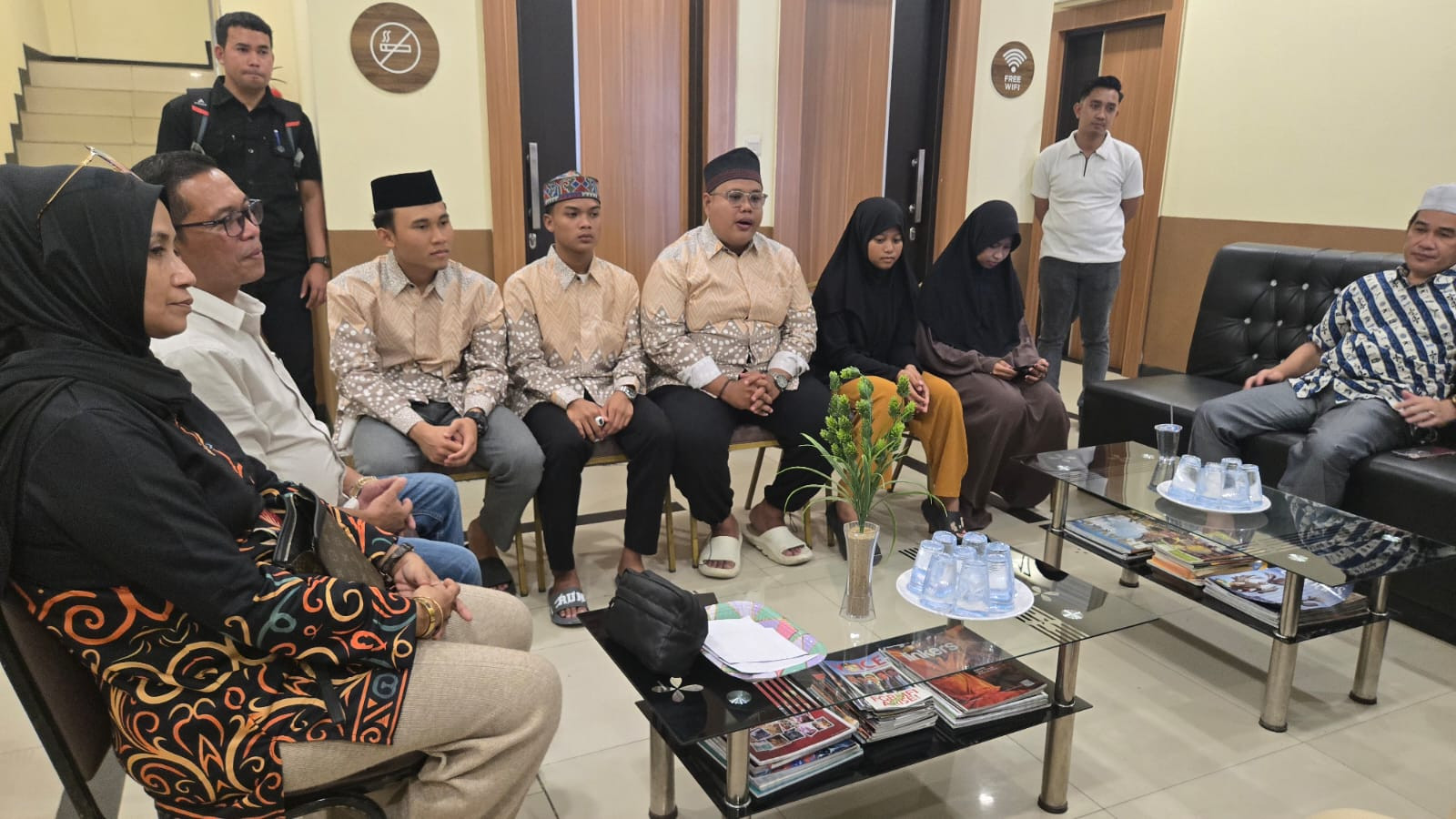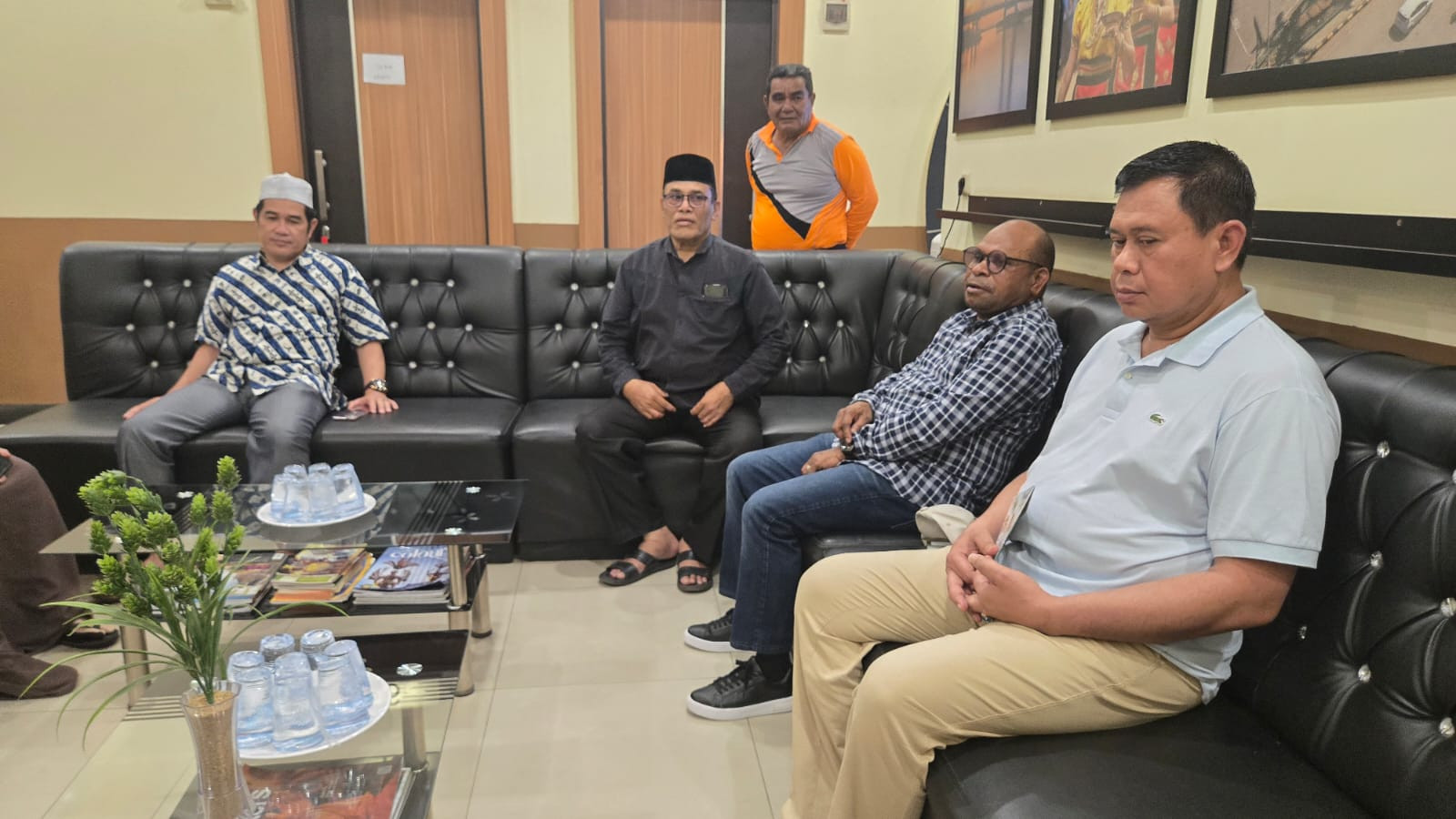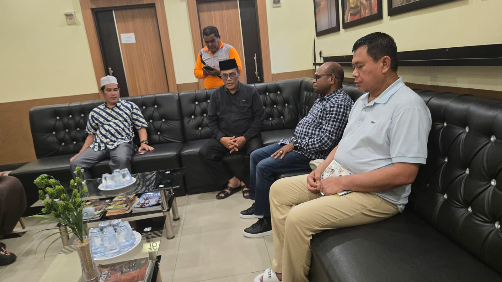 Wali Kota Sorong, Septinus Lobat, S.H., M.P.A., bersama Wakil Wali Kota Sorong, H. Anshar Karim, A.Md., menyambangi para kafilah asal Kota Sorong yang mewakili Provinsi Papua Barat Daya dalam ajang Seleksi Tilawatil Qur’an dan Hadits (STQH) Nasional ke-XXVIII Tahun 2025.