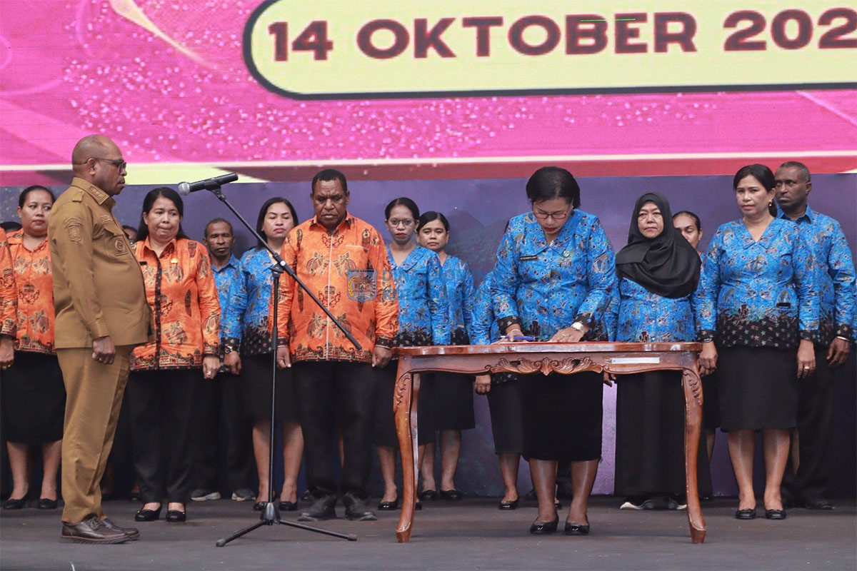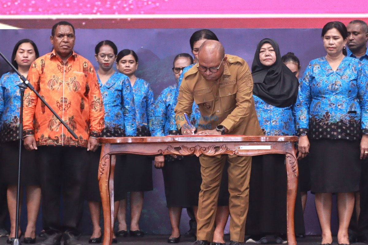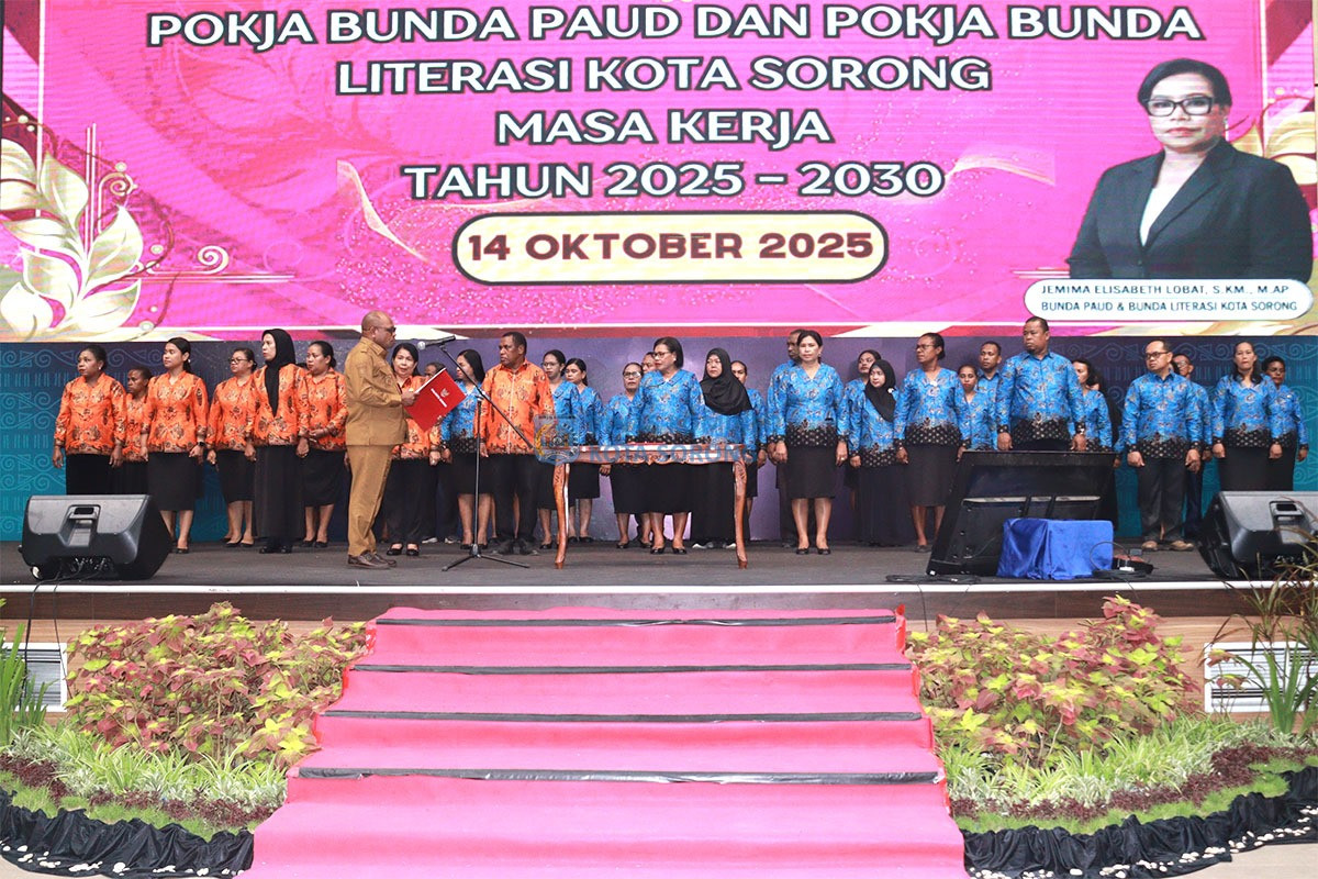 ππ¨ππ ππ¨π«π¨π§π - Wali Kota Sorong, Septinus Lobat, S.H., MPA., melantik dan mengukuhkan Kelompok Kerja (Pokja) Bunda PAUD dan Pokja Bunda Literasi Kota Sorong masa bhakti 2025β2030, di Gedung Lambert Jitmau, Selasa (14/10/2025) siang.