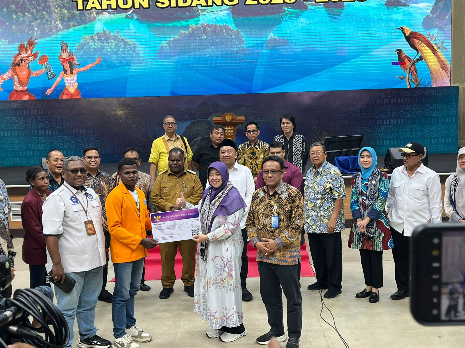 Setelah rapat kemudian dilanjutkan dengan penyerahan cinderamata dan penyerahan Kartu KIP Kuliah secara Simbolis kepada perwakilan mahasiswa dari dua universitas yang ada di Kota Sorong dan bantuan lainnya. (Diskominfo Kota Sorong).