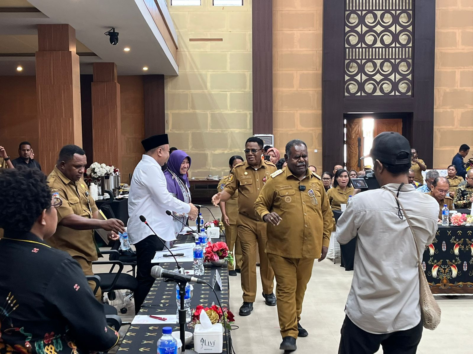 Wali Kota Sorong Septinus Lobat, S.H., MPA, yang diwakili oleh Pelaksana tugas (Plt) Sekretaris Daerah Kota Sorong Ruddy R. Laku, S.Pi, M.M, bersama Plt. Kepala Dinas Pendidikan Kota Sorong mengikuti kegiatan kunjungan kerja Komisi X Dewan Perwakilan Rakyat Republik Indonesia (DPR RI) reses komisi X di Provinsi Papua Barat Daya masa persidangan I tahun sidang 2025-2026. Rapat ini dilaksanakan di Gedung Lambert Jitmau, M.M kompleks kantor Wali Kota Sorong. Senin, (06/10/2025).