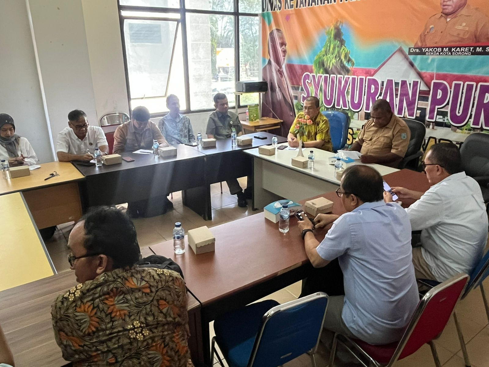 Kota Sorong - Dinas Ketahanan Pangan Kota Sorong menerima kunjungan Tim Kementerian Koordinator Bidang Perekonomian (Kemenko) Pangan bersama perwakilan kementerian/lembaga pusat yang melakukan kunjungan kerja di Kota Sorong. Kegiatan tersebut berlangsung di ruang pertemuan Dinas Ketahanan Pangan Kota Sorong. Selasa, (11/11/2025).
