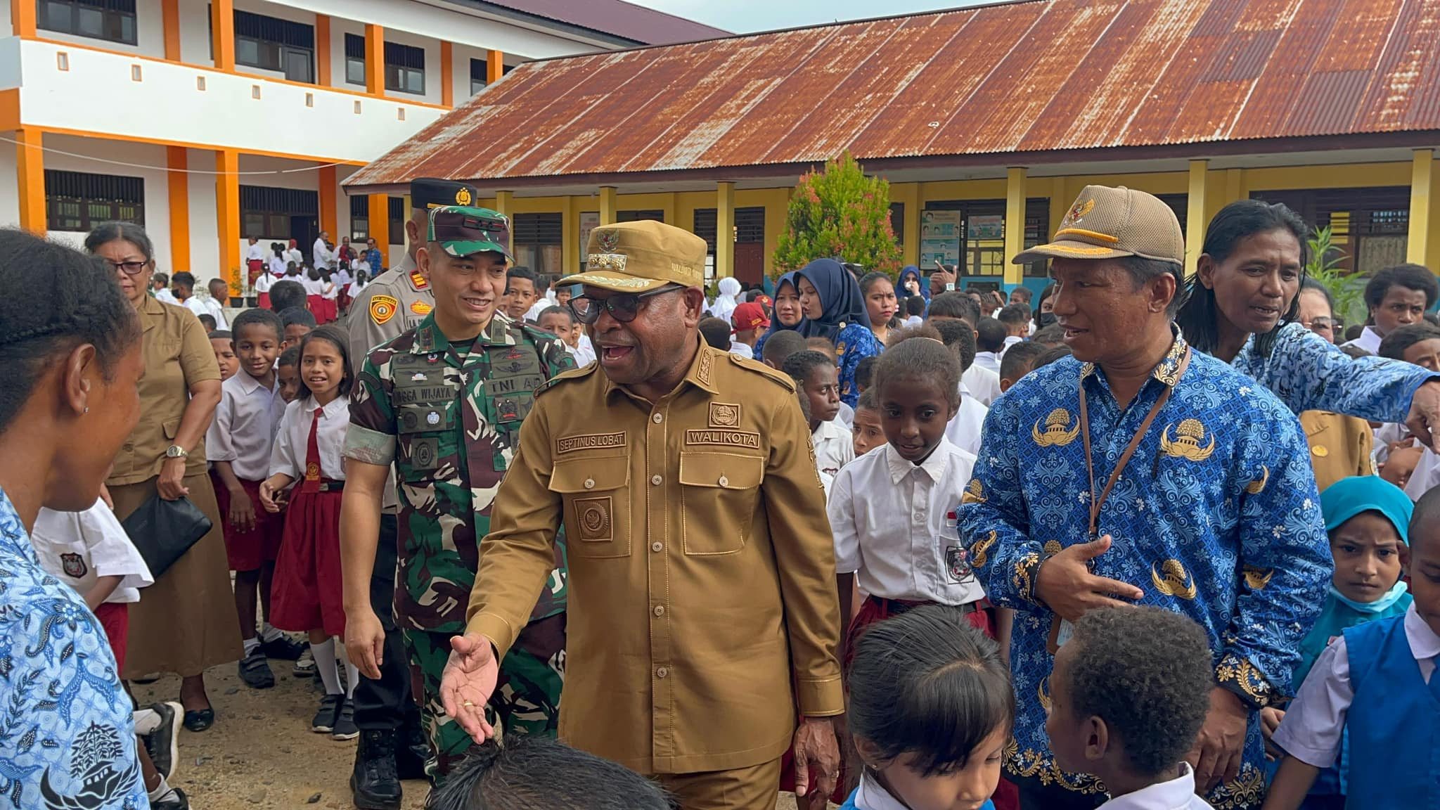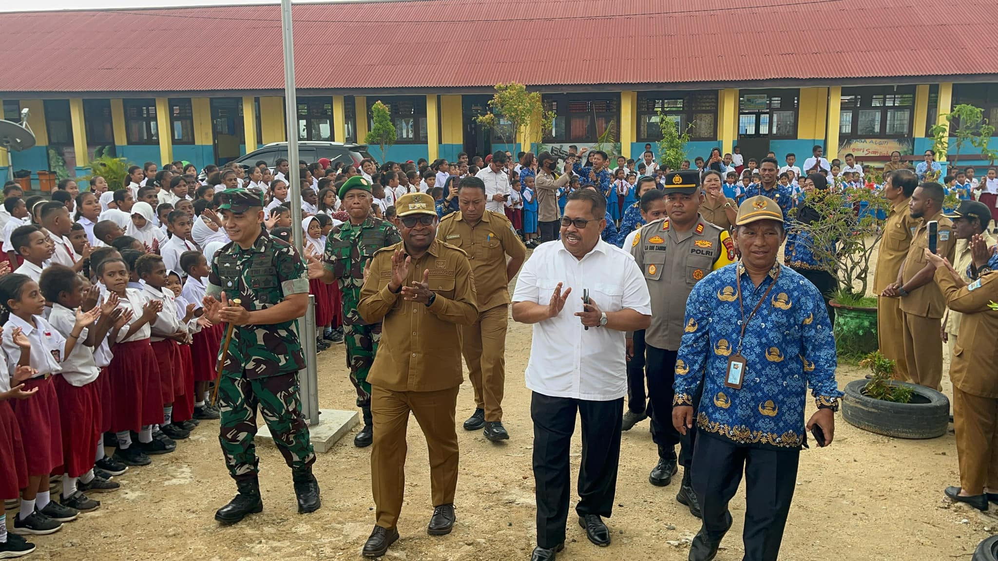 Kota Sorong - Wali Kota Sorong, Septinus Lobat, S.H., MPA, bersama Forkopimda Kota Sorong dan Kepala Dinas Pendidikan Kota Sorong melaunching kegiatan Makan Bergizi Gratis. Kegiatan ini dilaksanakan di SD Negeri 15 Kota Sorong yang dihadiri oleh para guru dan siswa-siswi dari SD tersebut. Senin, (17/03/2025).