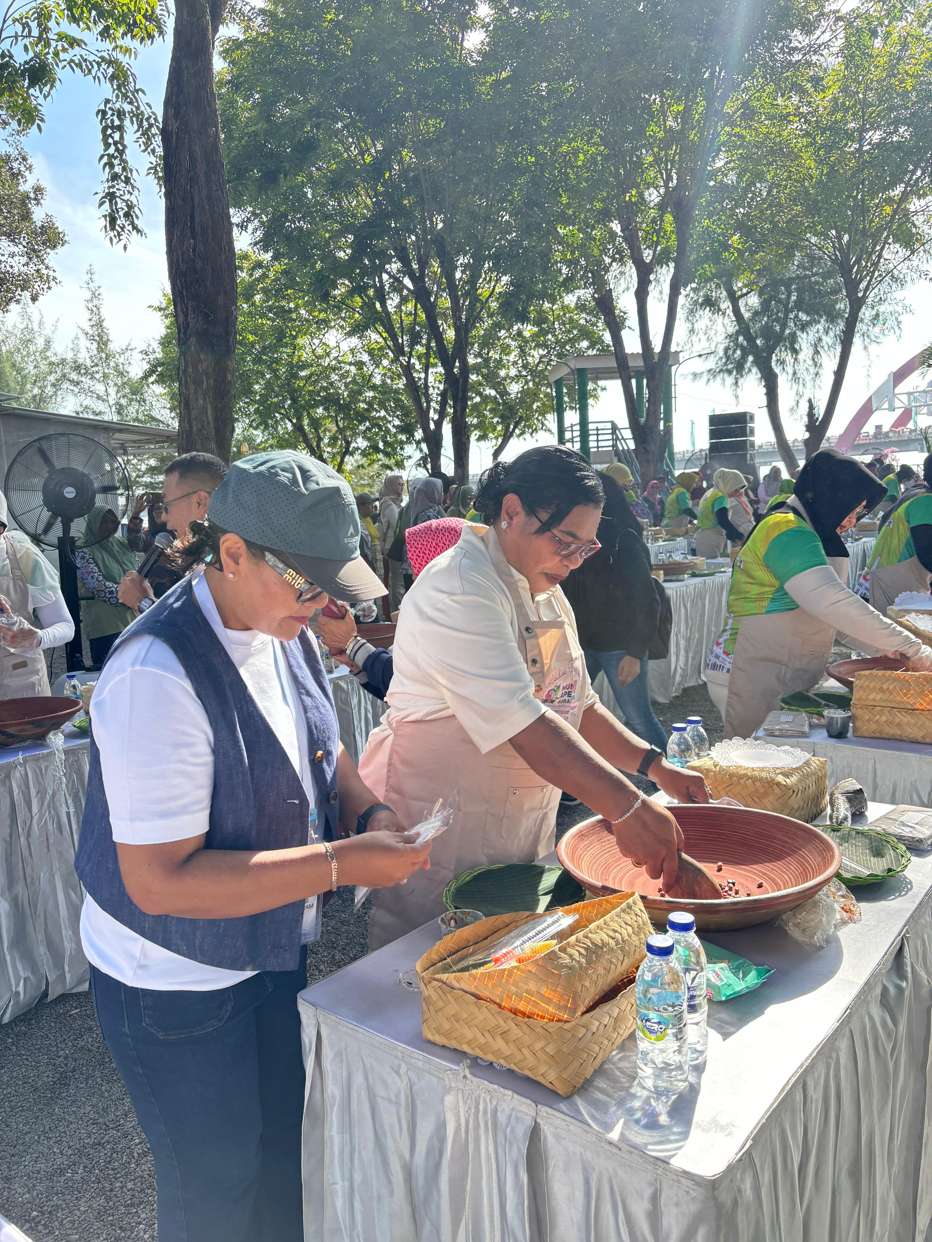 SURABAYA - Ketua TP PKK Kota Sorong, Ny. Jemima Elisabet Lobat, Windesi, SKM, MAP., Bersama Plt. Kepala Dinas Kominfo Kota Sorong, hadir dalam Ladies Progam Nguleg Rujak, Taman Hiburan Pantai (THP) Kenjeran. Jumat (9/5/2025).