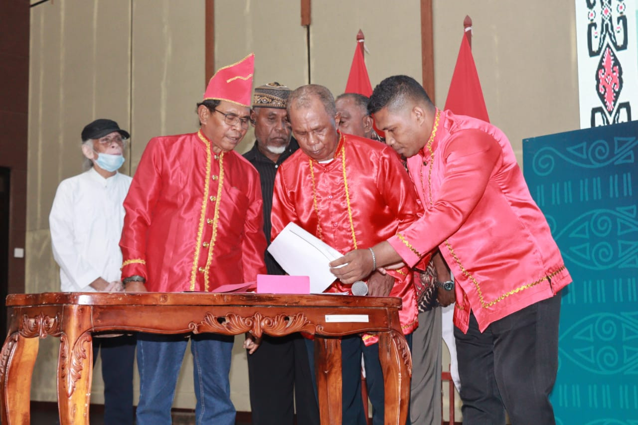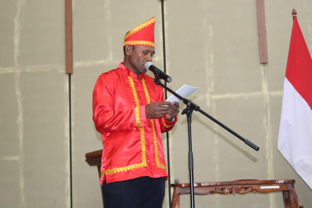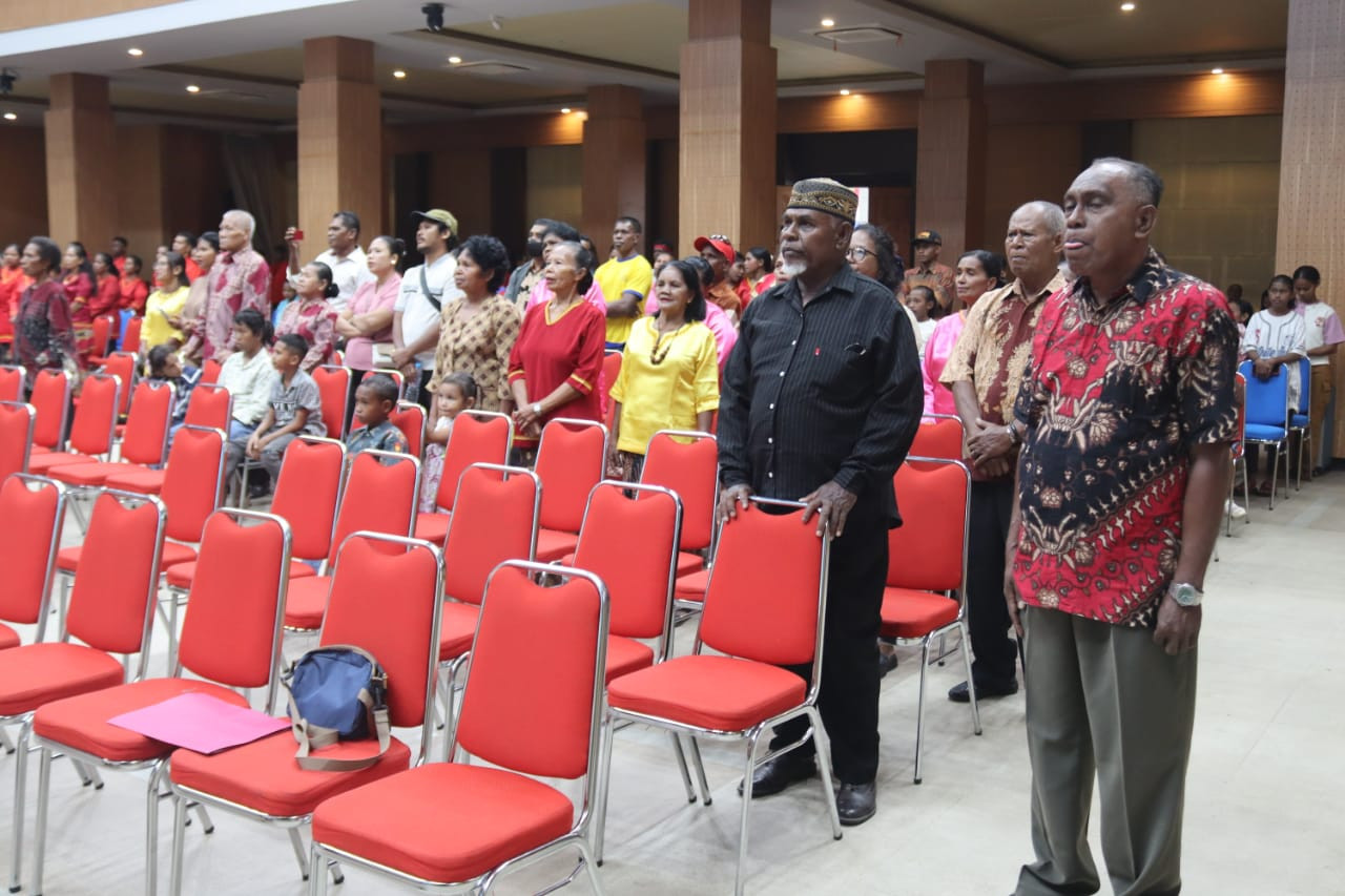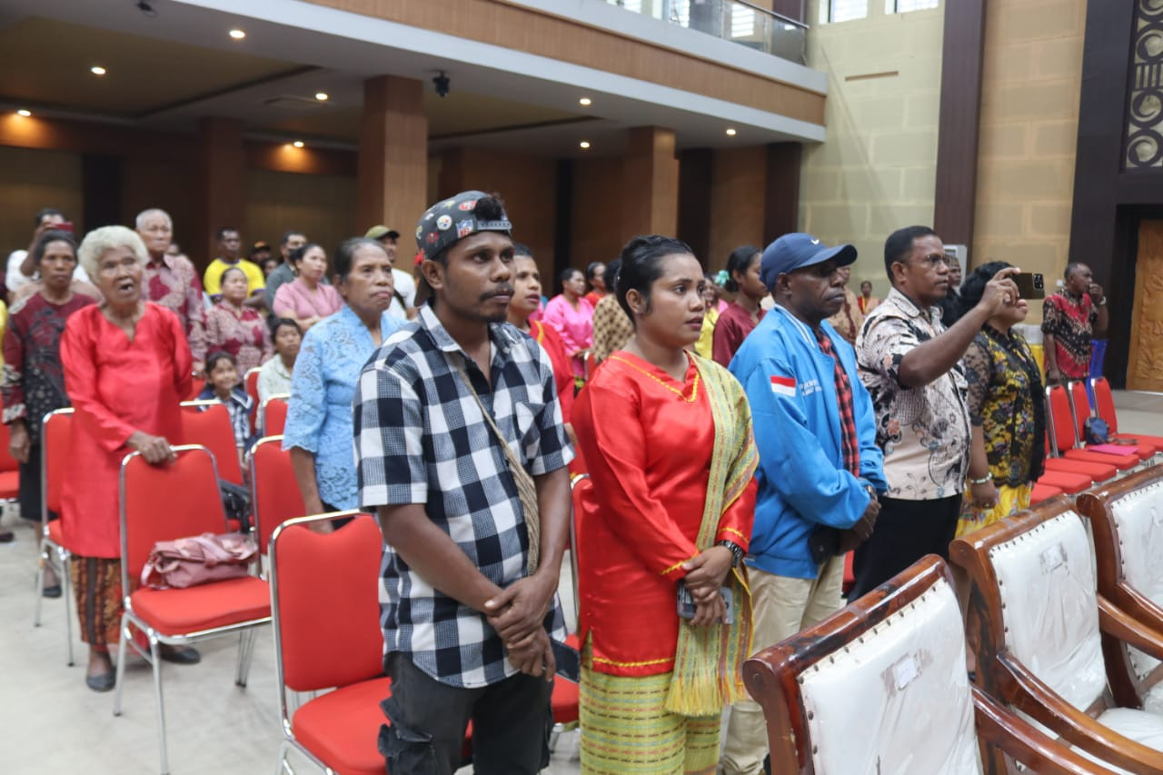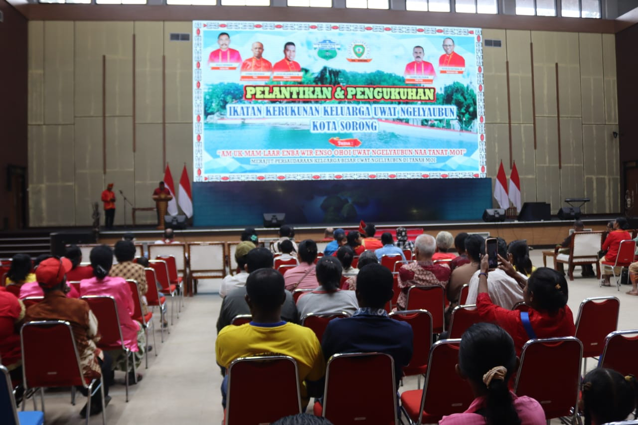 Mewakili Wali Kota Sorong, Asisten Bidang Pemerintahan dan Kesejahteraan Rakyat, Jeremias Gembenop, S.Sos., M.H., menghadiri Pelantikan dan Pengukuhan Ikatan Kerukunan Keluarga Uwat Ngelyaubun Kota Sorong, yang berlangsung di Gedung Lambert Jitmau, Minggu (24/8/2025). Dalam sambutannya dikatakan, kegiatan tersebut bukan hanya seremonial saja, tetapi menjadi langkah awal dalam memperkuat persaudaraan, kebersamaan, dan komitmen untuk membangun kota Sorong menjadi lebih baik. (Diskominfo Kota Sorong).