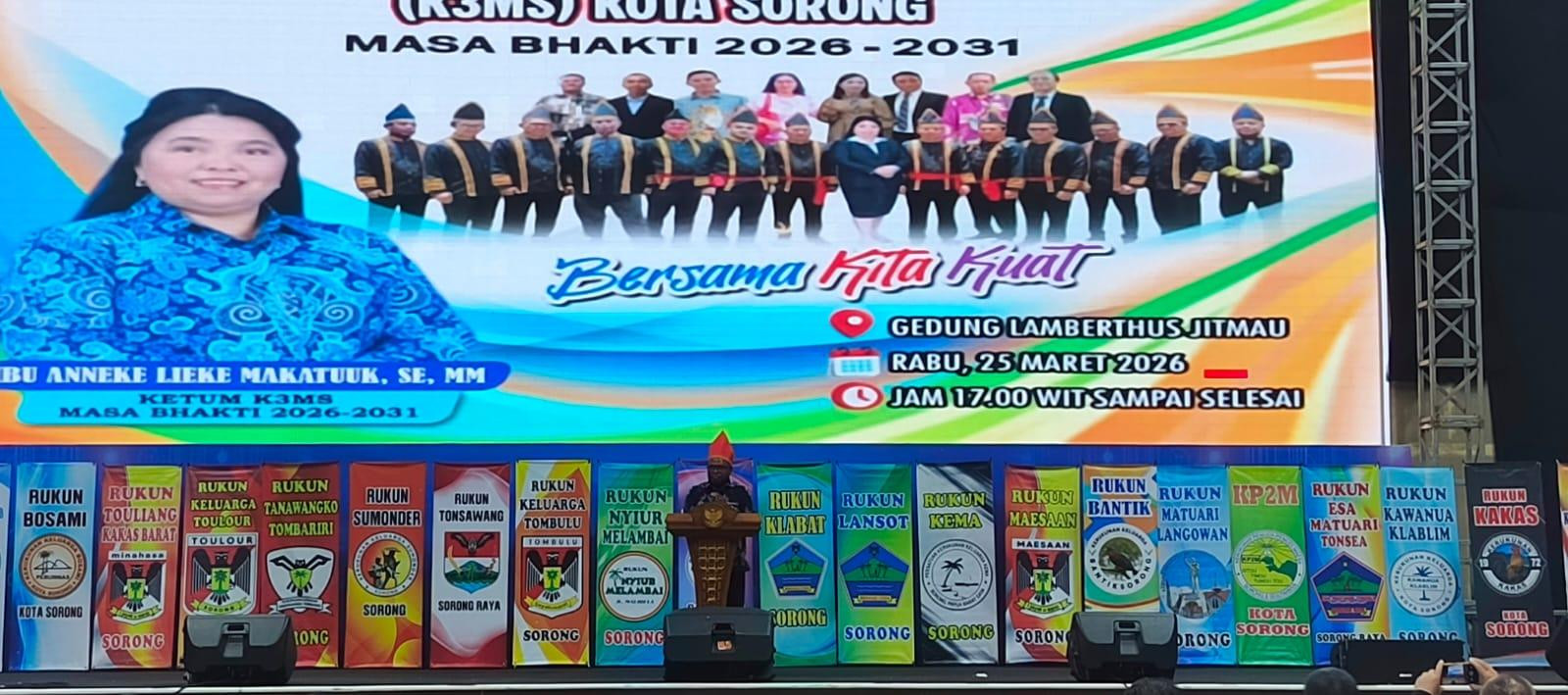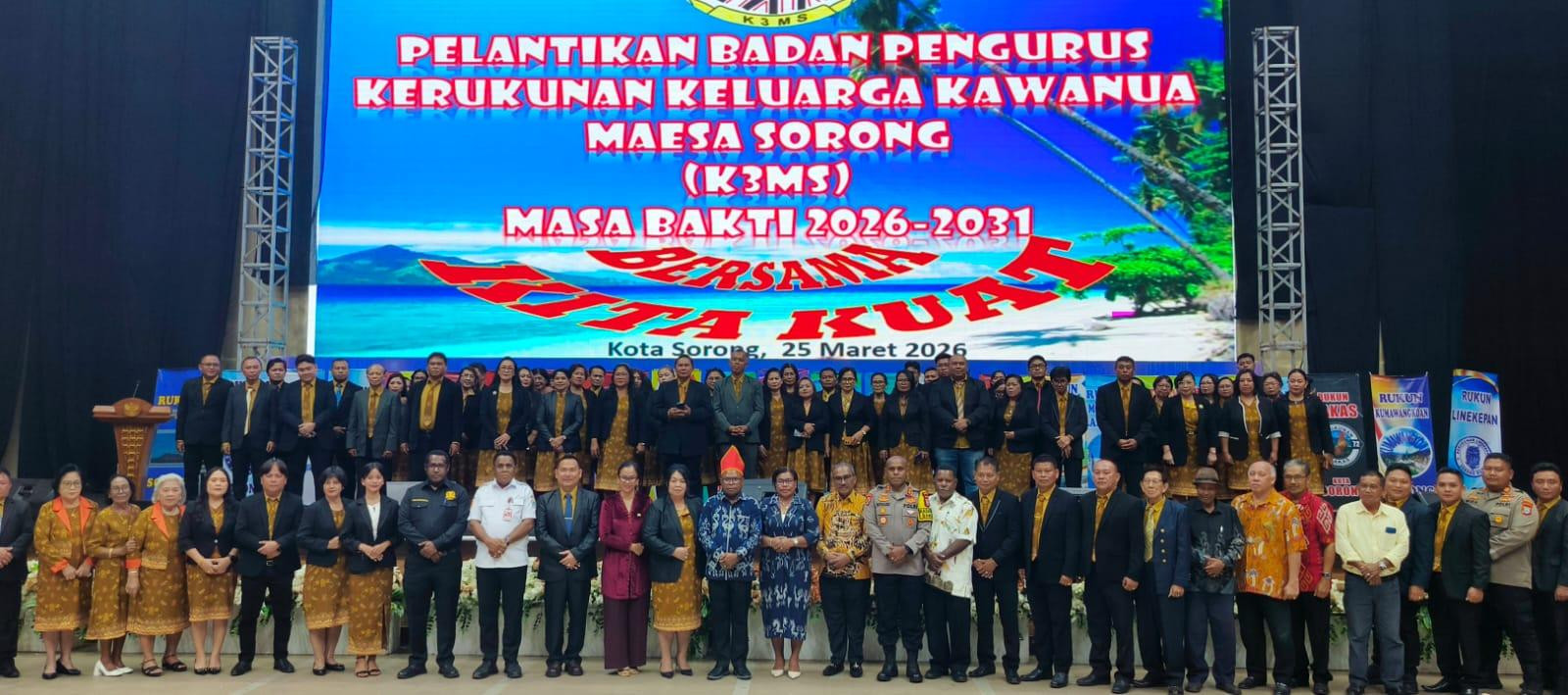 Sorong, 25 Maret 2026 – Wali Kota Sorong, Septinus Lobat, secara resmi melantik Badan Pengurus Kerukunan Keluarga Kawanua Maesa Sorong (K3MS) masa bakti 2026–2031. Acara pelantikan berlangsung di Gedung Lambert Jitmau, Kota Sorong, dan dihadiri oleh sejumlah pejabat daerah serta tokoh masyarakat. Pelantikan ini juga turut dihadiri oleh Ketua Umum K3MS yang baru, Anneke Lieke Makatuuk, bersama para tamu undangan dari unsur pemerintah, DPR, TNI-Polri, serta berbagai organisasi kemasyarakatan. Dalam laporan ketua panitia disampaikan bahwa kegiatan ini bertujuan untuk mengesahkan kepengurusan baru sekaligus mempererat persaudaraan warga Kawanua di Kota Sorong. Sebanyak 70 orang pengurus dilantik, yang berasal dari 24 unsur kerukunan di bawah naungan K3MS. Pelantikan mengusung tema “Bersama Kita Kuat”. Ketua Umum K3MS, Anneke Lieke Makatuuk, dalam sambutannya menekankan pentingnya persatuan dan semangat gotong royong (mapalus) sebagai jati diri masyarakat Minahasa. Ia juga mengingatkan sejarah panjang organisasi Kawanua di Sorong yang telah ada sejak tahun 1967 hingga mengalami berbagai dinamika dan akhirnya bersatu kembali pada tahun 2020. “K3MS harus menjadi rumah besar yang merangkul semua warga Kawanua serta terus menjaga persatuan, tanpa terpecah oleh perbedaan,” ujarnya. Selain itu, K3MS juga berkomitmen untuk mendukung pemerintah daerah serta menghormati masyarakat asli Papua. Organisasi ini diharapkan mampu berperan aktif dalam menjaga keharmonisan dan kebinekaan di Kota Sorong. Sementara itu, Wali Kota Sorong, Septinus Lobat, dalam sambutannya menyampaikan apresiasi atas kontribusi warga Kawanua dalam menjaga kerukunan dan mendukung pembangunan daerah. “Pelantikan ini menjadi momen strategis untuk memperkuat sinergi antara K3MS dan pemerintah dalam membangun Kota Sorong yang maju, bersih, hijau, aman, dan sejahtera,” ungkapnya. Ia juga menilai bahwa selama ini masyarakat Kawanua di Kota Sorong dikenal menjaga ketertiban dan kerukunan, serta diharapkan terus menjadi contoh bagi kelompok masyarakat lainnya. Dengan dilantiknya kepengurusan baru ini, diharapkan K3MS dapat semakin solid dalam menjalankan program kerja serta memperkuat persatuan masyarakat Kawanua di tanah rantau, sekaligus berkontribusi nyata bagi pembangunan Kota Sorong. (Diskominfo Kota Sorong)