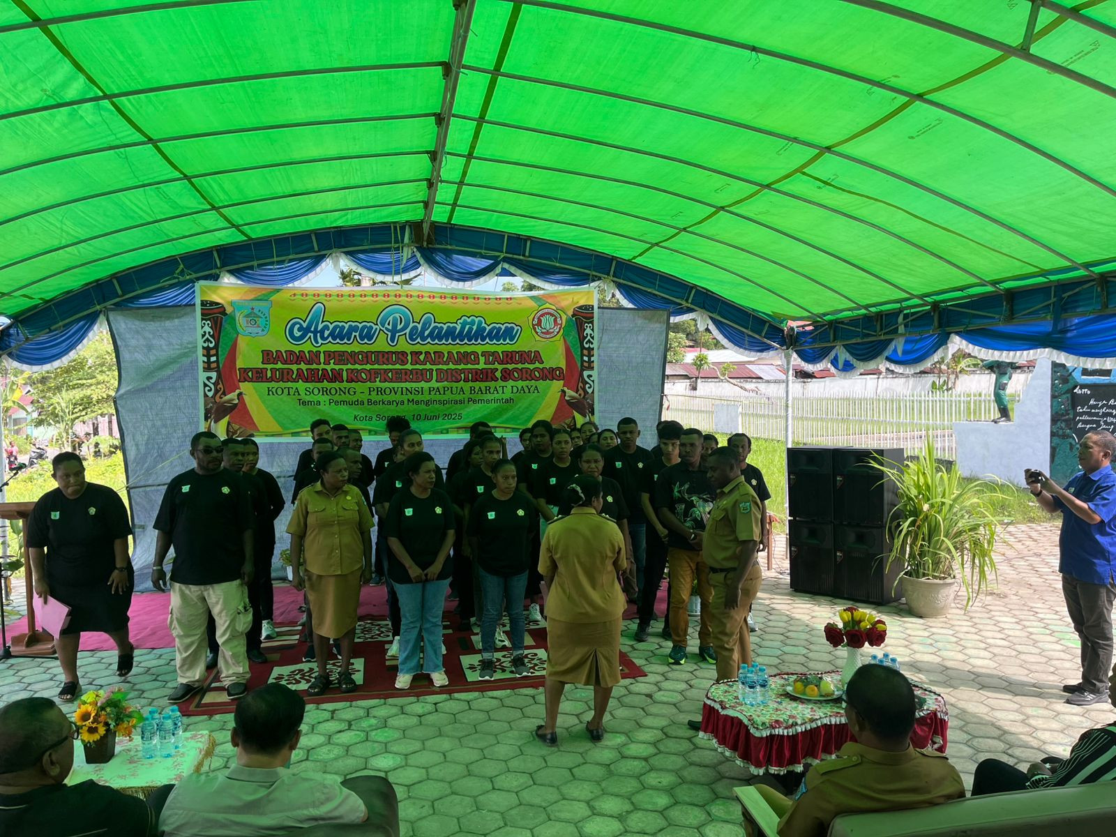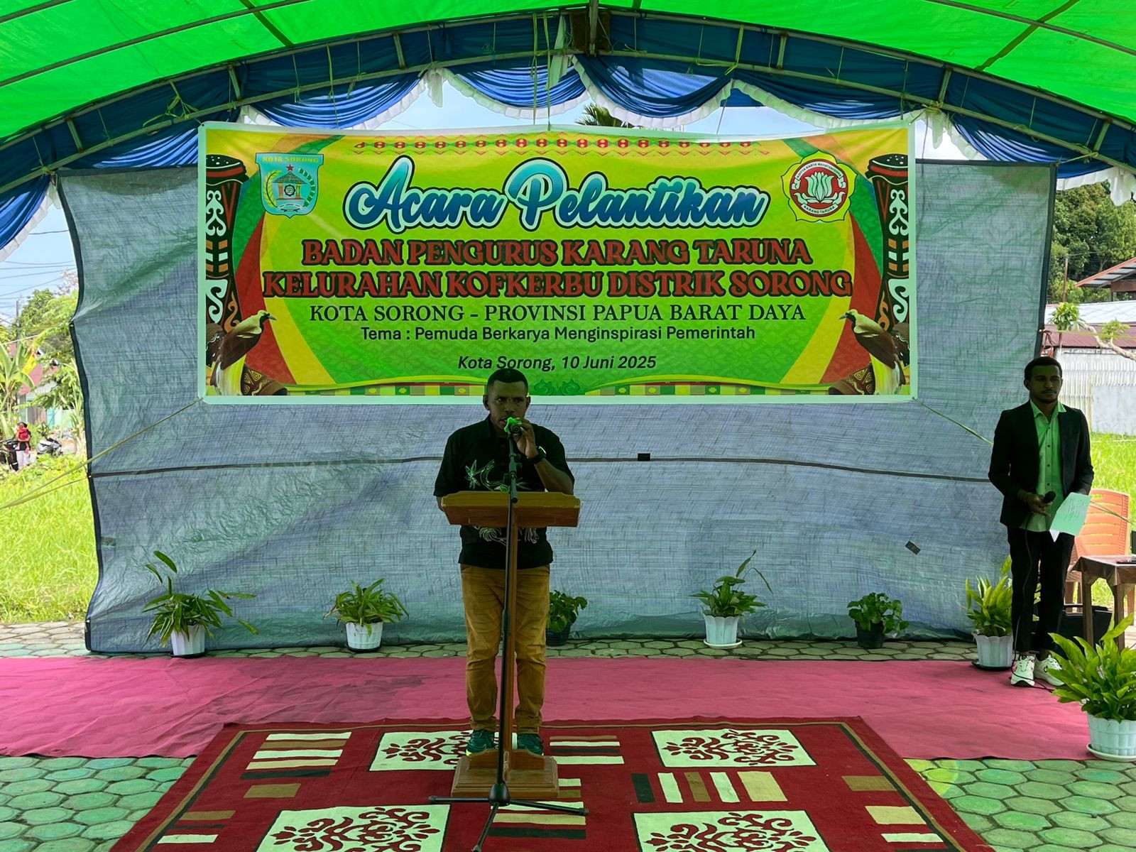 Sebelumnya dilakukan pembacaan SK pelantikan pengurus Karang Taruna Kelurahan Kofkerbu dan dilanjutkan dengan pelantikan oleh lurah Kofkerbu. (Diskominfo Kota Sorong).