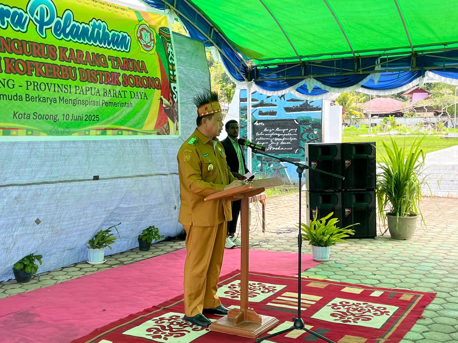 “Saya percaya bahwa para pengurus yang terpilih pada periode ini adalah generasi muda terbaik yang memiliki semangat pengabdian, integritas, serta visi yang jelas dalam memajukan kelurahan kofkerbu. Dengan kolaborasi yang baik antara pemerintah kelurahan, masyarakat, dan pemuda saya yakin karang taruna akan menjadi motor penggerak perubahan sosial yang positif. Pemerintah Kota Sorong senantiasa mendukung program-program pemberdayaan pemuda, termasuk kegiatan karang taruna, karena kami menyadari kota ini sangat ditentukan oleh kualitas dan kapasitas para pemudanya”, ucap Wakil Wali Kota Sorong.