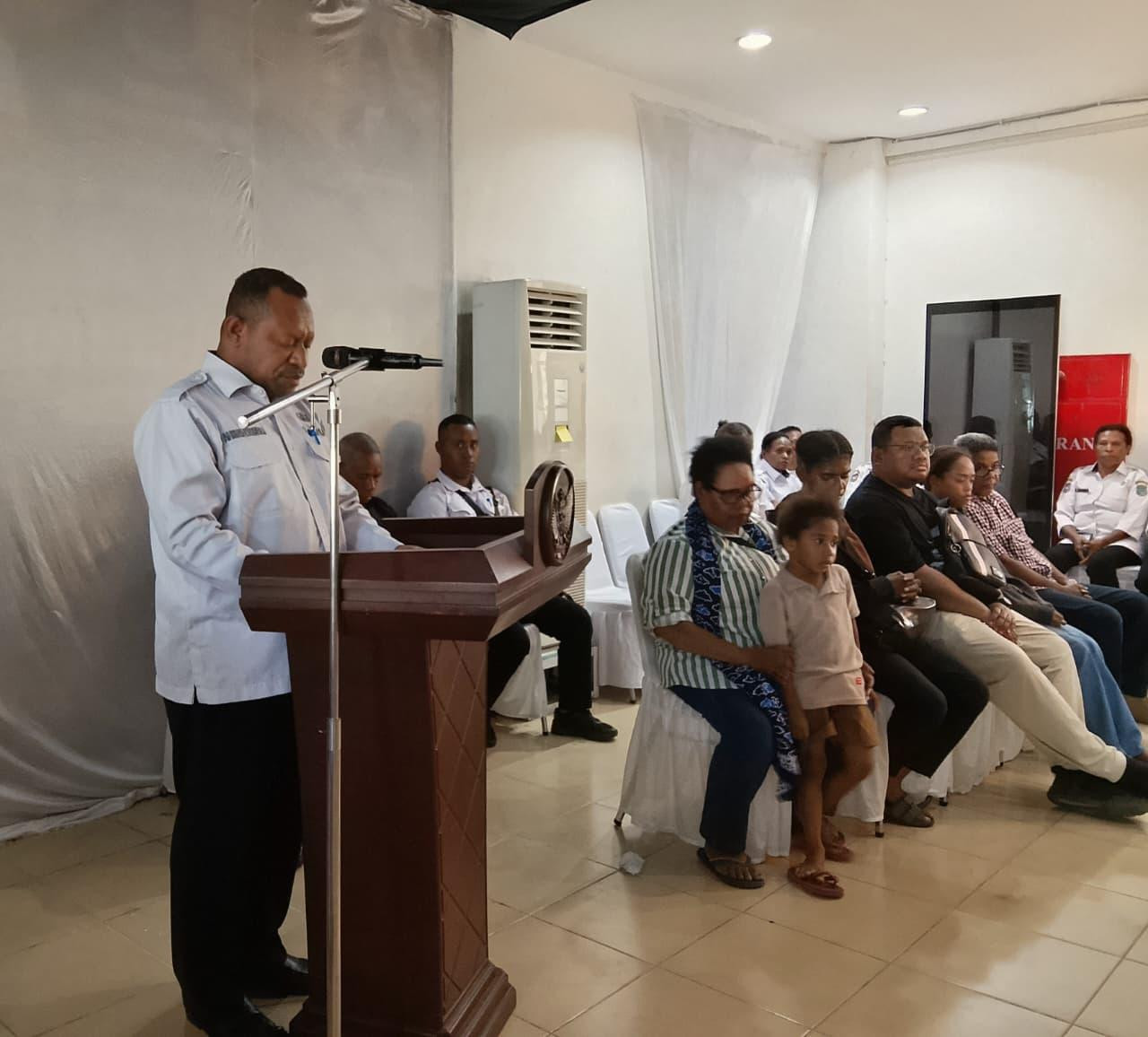 Kepala Badan Kesatuan Bangsa dan Politik Kota Sorong, Hendrikus Momot, S.E., mewakili Wali Kota Sorong, hadiri acara penerimaan dan pelepasan almarhum Dr. Drs. Augusthinus Lamaech Flassy, M.A., di Kantor Gubernur Provinsi Papua Barat Daya, Rabu (25/3/2026).