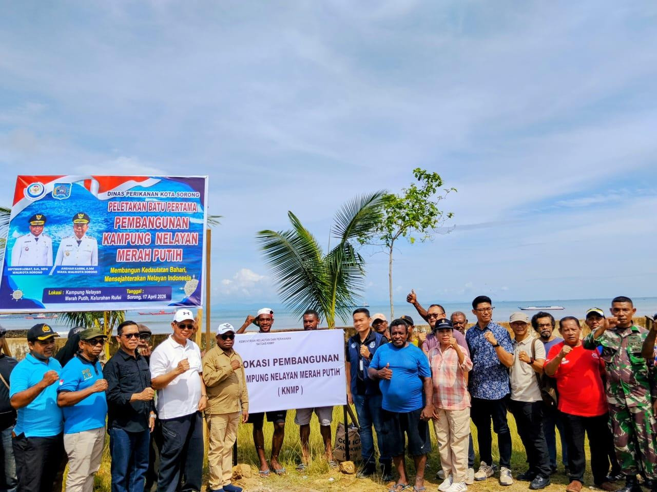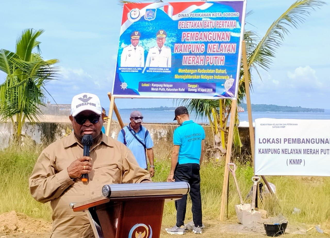 Sorong — Wali Kota Sorong, Septinus Lobat, S.H., MPA, secara resmi melaksanakan peletakan batu pertama pembangunan Kampung Nelayan Merah Putih (KNMP) yang berlokasi di Jalan Yos Sudarso, Kelurahan Rufei, Distrik Sorong Barat, Jumat (17/4/2026).