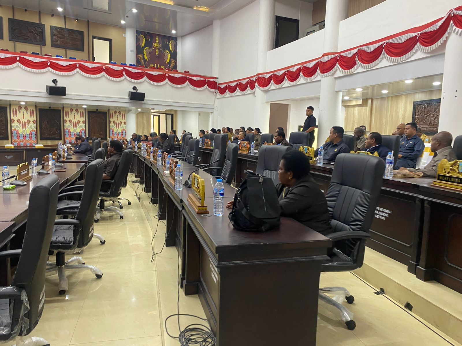 Rapat yang dilaksanakan di Gedung DPRK Kota Sorong ini dihadiri oleh Wali Kota Sorong, Septinus Lobat, S.H., MPA, Wakil Wali Kota H. Anshar Karim, A.Md., Plt. Sekda Kota Sorong, serta para pejabat di lingkup Pemerintah Kota Sorong.