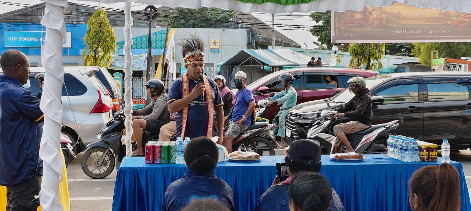 Dalam rangka menyambut Bulan Suci Ramadan, Asisten I Setda Kota Sorong, Jeremias Gembenop, S.Sos., M.H., Mewakili Walikota Sorong bersama Alumni Mahasiswa Se-Sorong Raya membagikan takjil gratis kepada masyarakat yang melintas di lampu merah Jalan Basuki Rahmat, Kota Sorong, sebagai bentuk toleransi umat ber-Agama di Bulan Suci Ramadan serta membantu masyarakat yang sedang dalam perjalanan agar dapat berbuka puasa tepat waktu. Kota Sorong (7/3/2026).