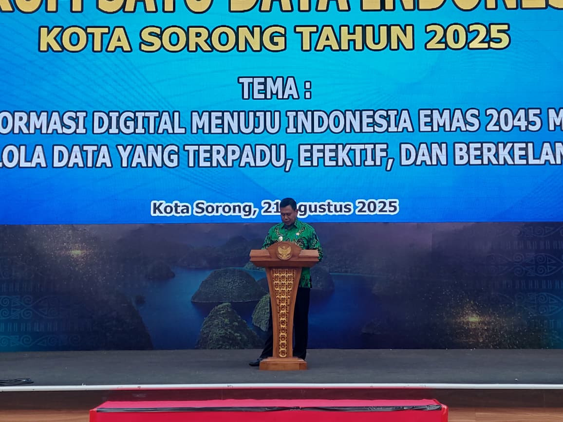 Wakil Wali Kota, H. Anshar Karim, A. MD., hadir dan buka secara resmi Forum Satu Data Indonesia Kota Sorong Tahun 2025, dengan Tema, Transformasi Digital Menuju Indonesia Emas 2045 Melalui Tata Kelola Data Yang Terpadu, Efektif, Dan Berkelanjutan. Gedung Drs. Ec L. Jitmau, MM, Kamis, (22/1/2025).